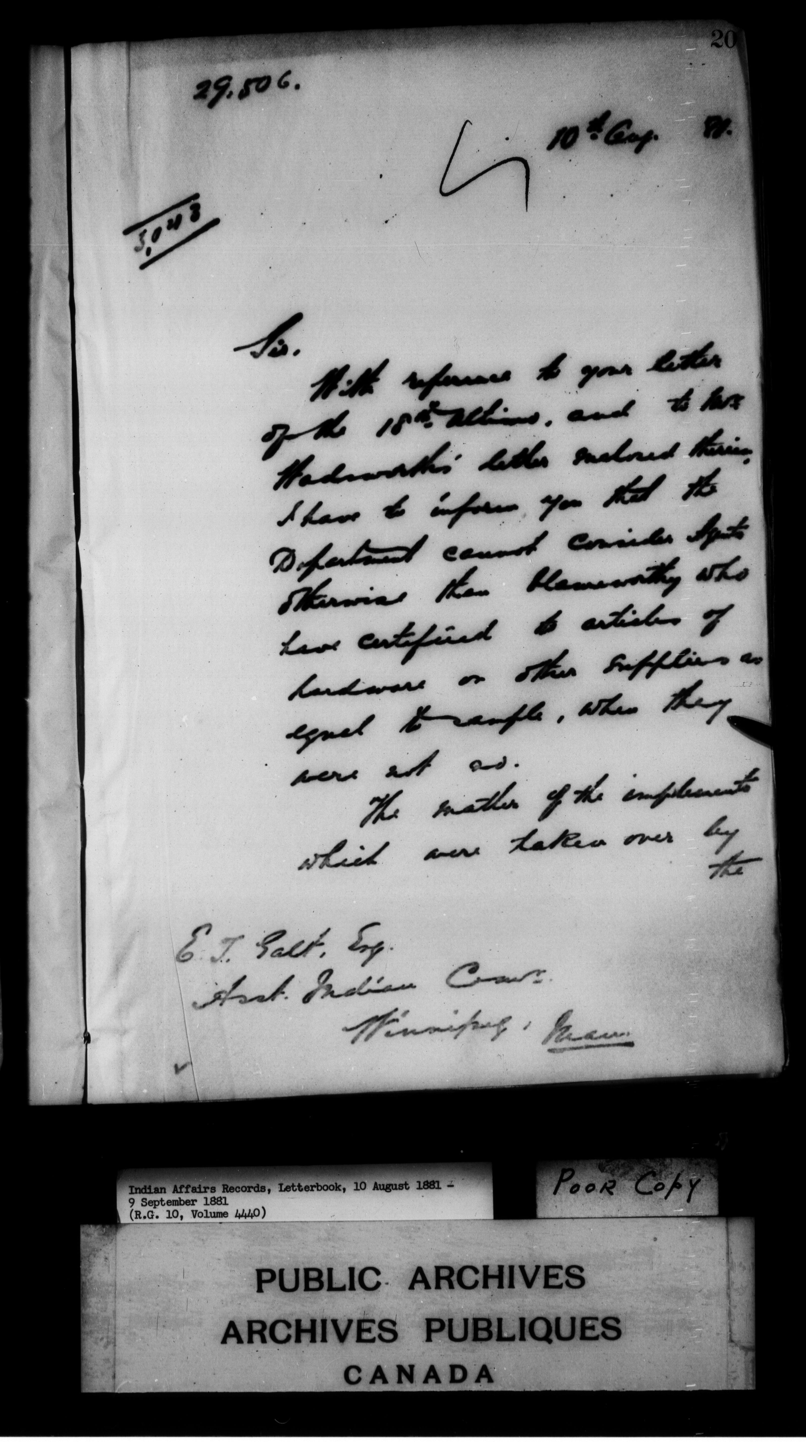 Department of Indian Affairs : Letterbooks of out-going correspondence relating to the administration of Indian Affairs in both eastern and western Canada, 1871-1920 - 7441