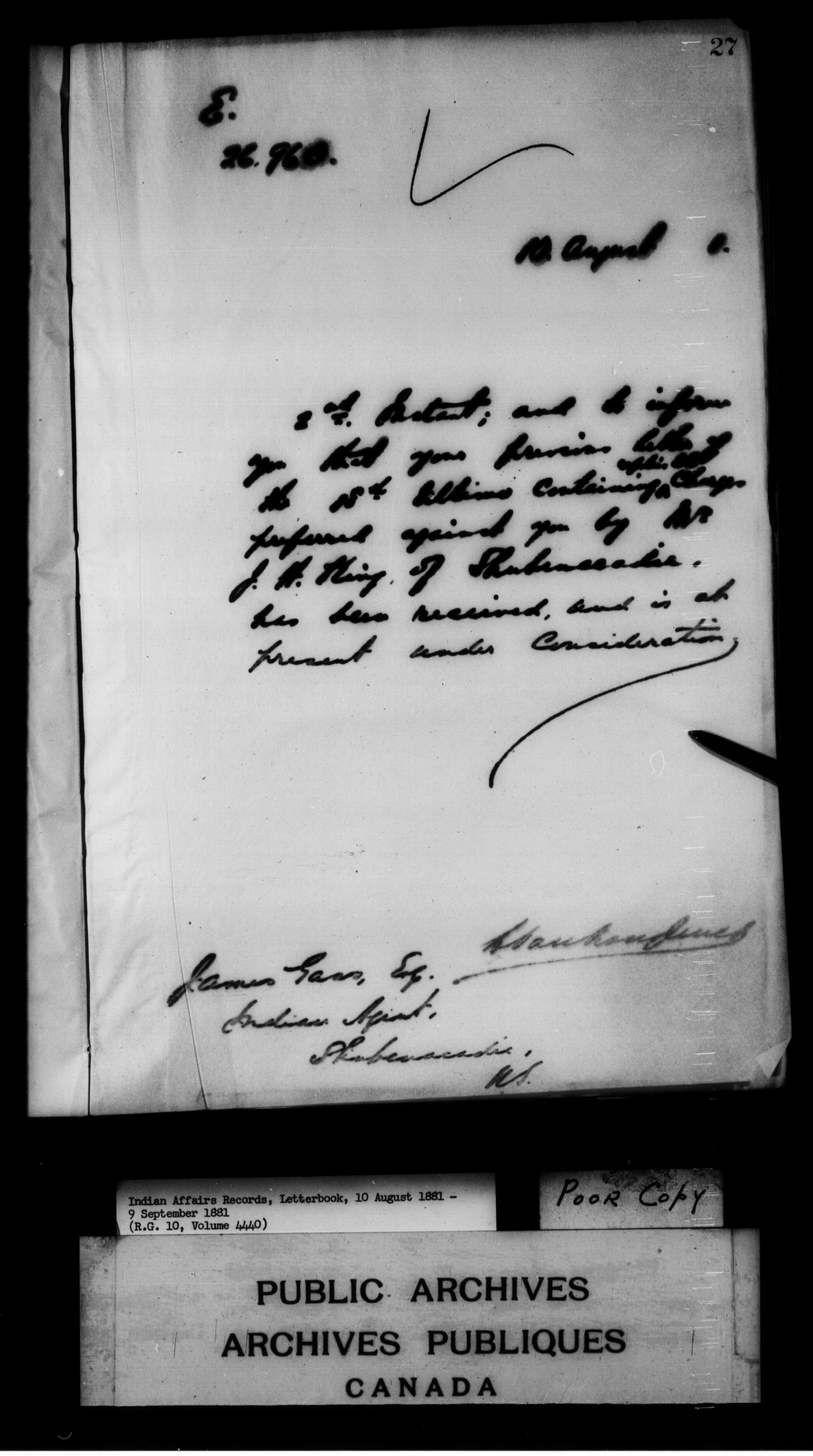 Department of Indian Affairs : Letterbooks of out-going correspondence relating to the administration of Indian Affairs in both eastern and western Canada, 1871-1920 - 7441