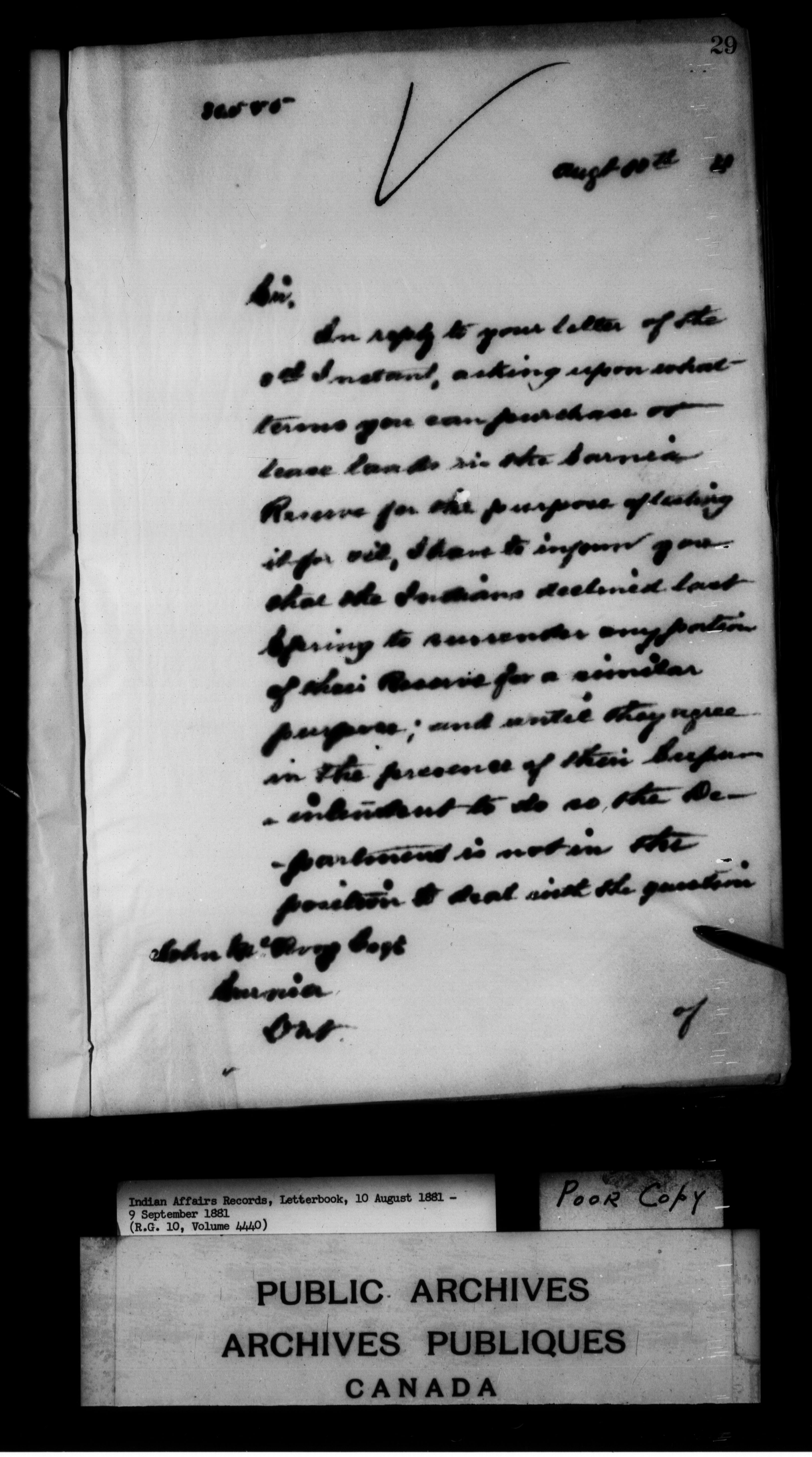 Department of Indian Affairs : Letterbooks of out-going correspondence relating to the administration of Indian Affairs in both eastern and western Canada, 1871-1920 - 7441