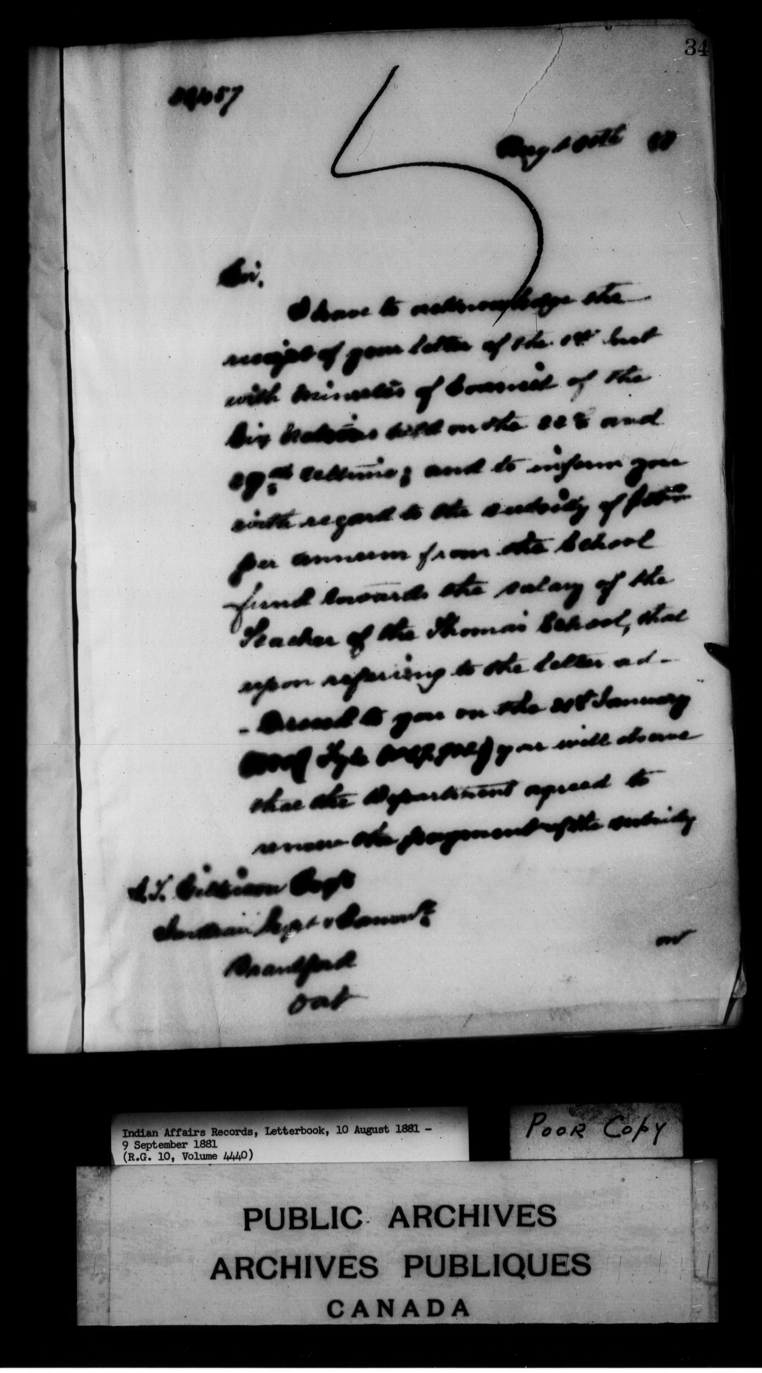Department of Indian Affairs : Letterbooks of out-going correspondence relating to the administration of Indian Affairs in both eastern and western Canada, 1871-1920 - 7441