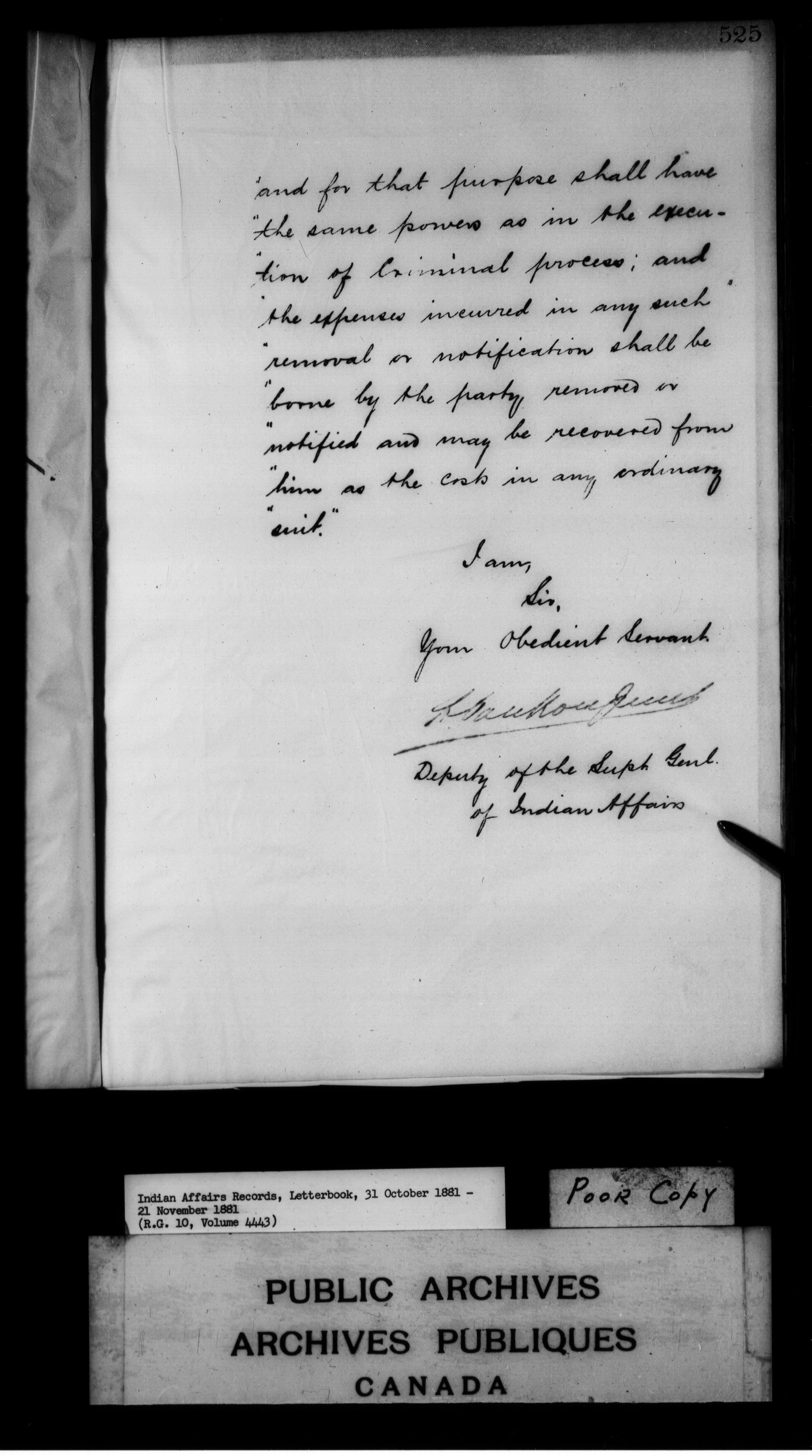 Department of Indian Affairs : Letterbooks of out-going correspondence relating to the administration of Indian Affairs in both eastern and western Canada, 1871-1920 - 7442