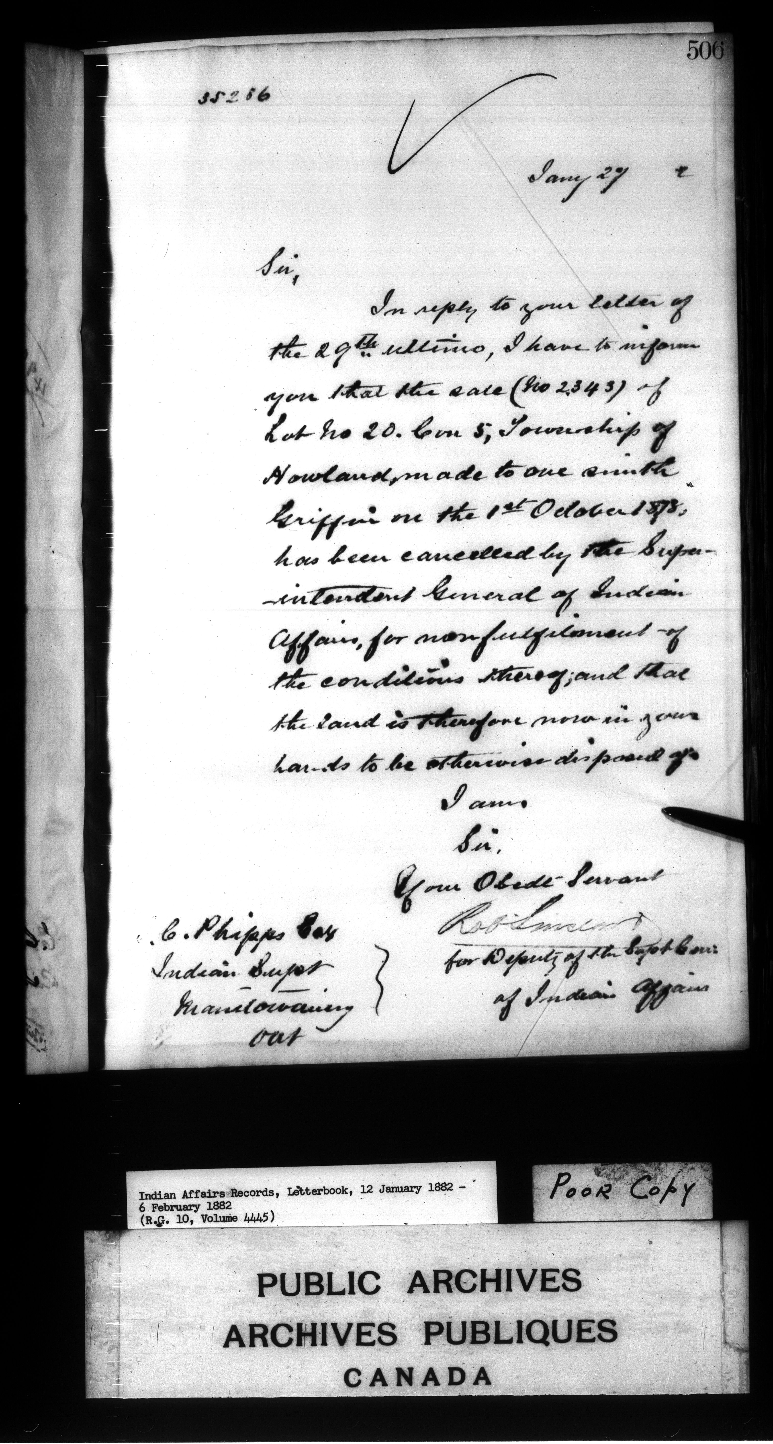 Department of Indian Affairs : Letterbooks of out-going correspondence relating to the administration of Indian Affairs in both eastern and western Canada, 1871-1920 - 7444