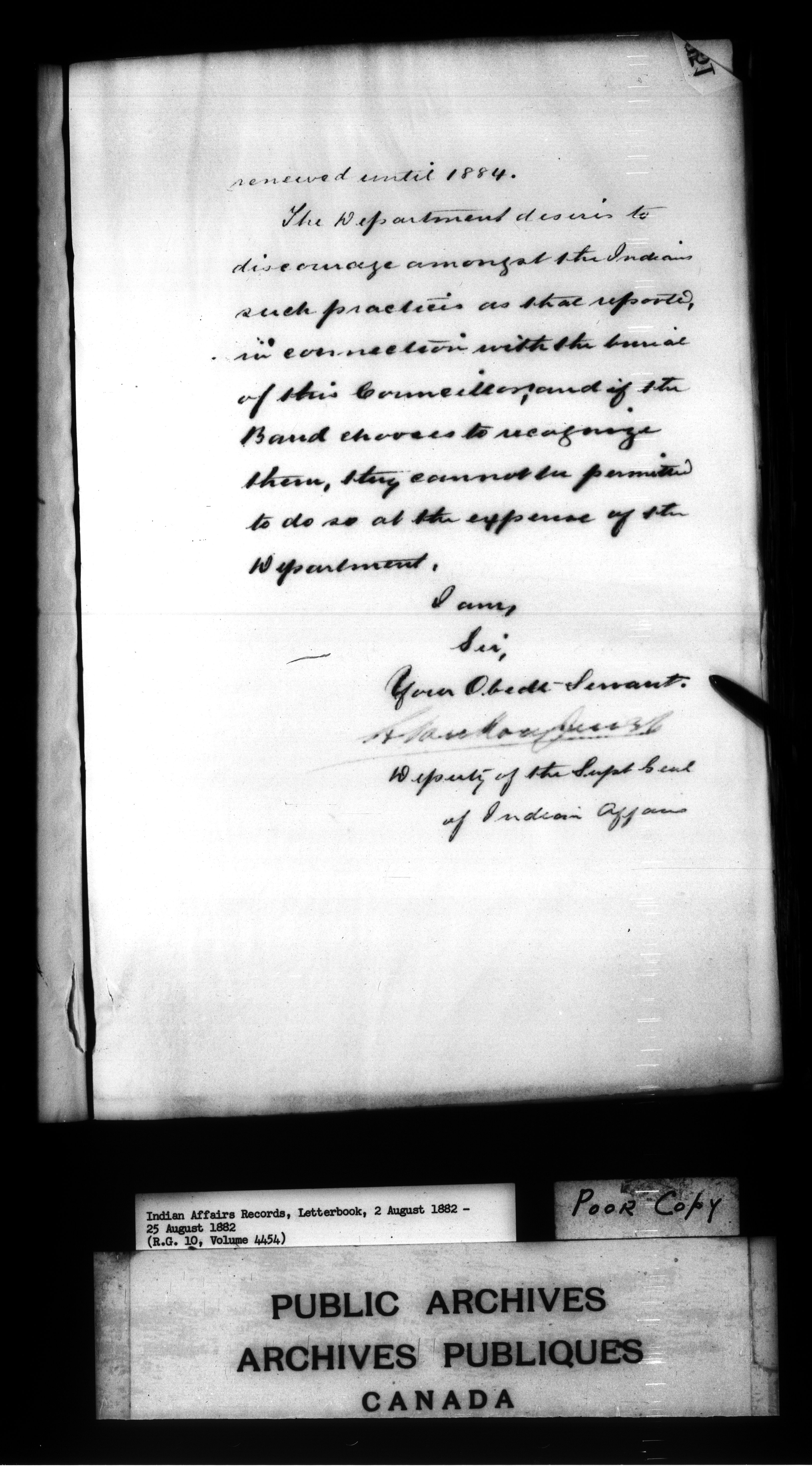Department of Indian Affairs : Letterbooks of out-going correspondence relating to the administration of Indian Affairs in both eastern and western Canada, 1871-1920 - 7449