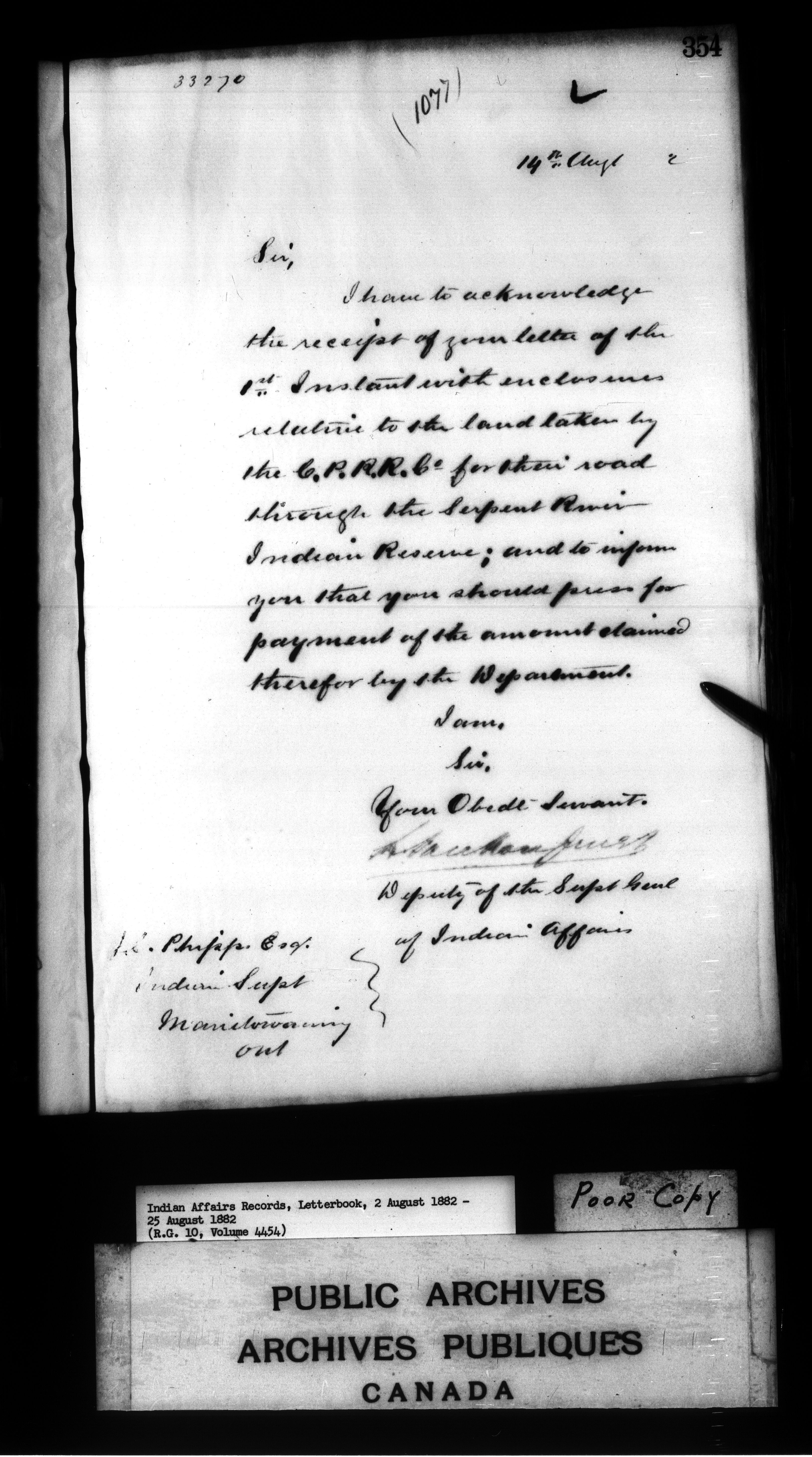 Department of Indian Affairs : Letterbooks of out-going correspondence relating to the administration of Indian Affairs in both eastern and western Canada, 1871-1920 - 7449