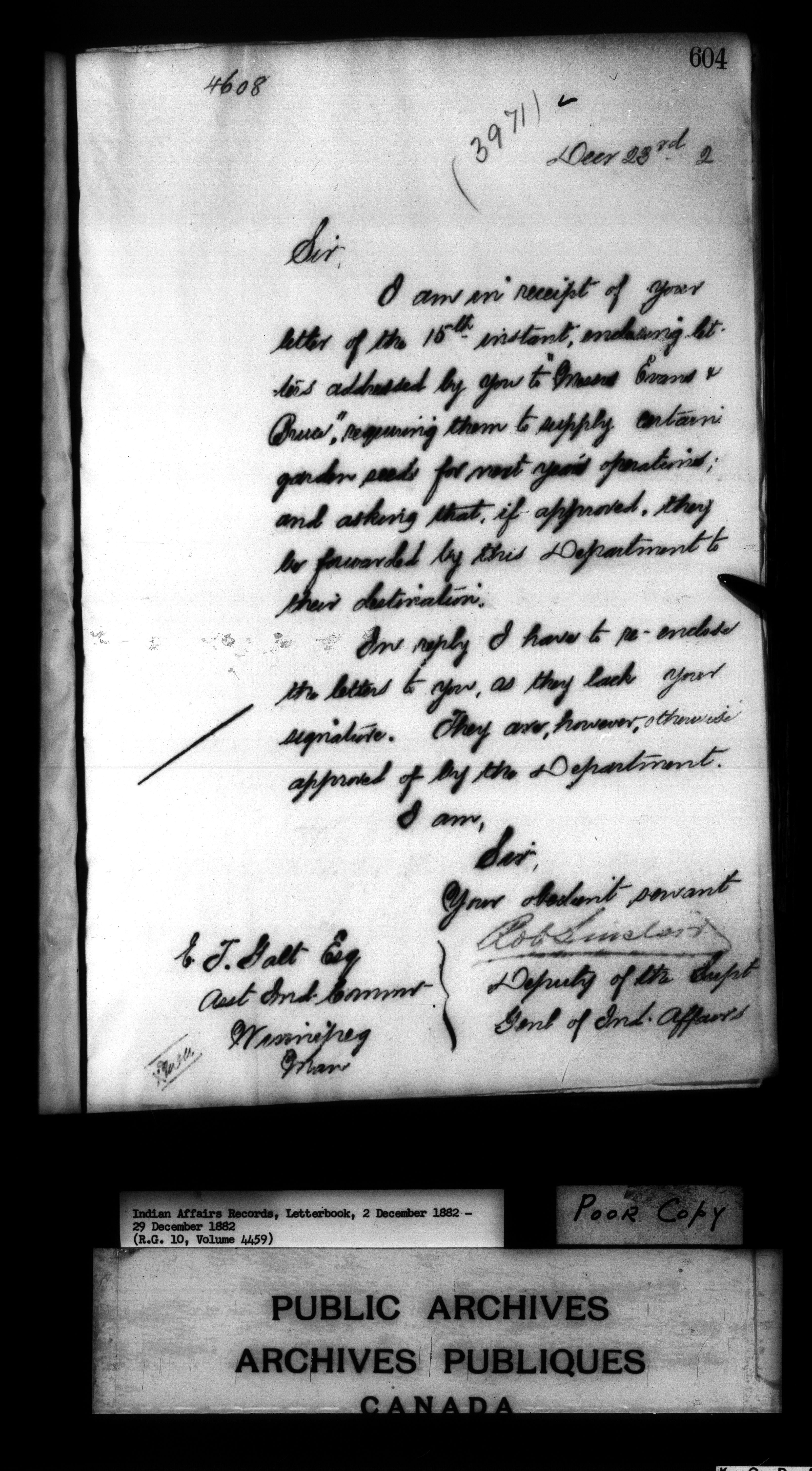 Department of Indian Affairs : Letterbooks of out-going correspondence relating to the administration of Indian Affairs in both eastern and western Canada, 1871-1920 - 7453