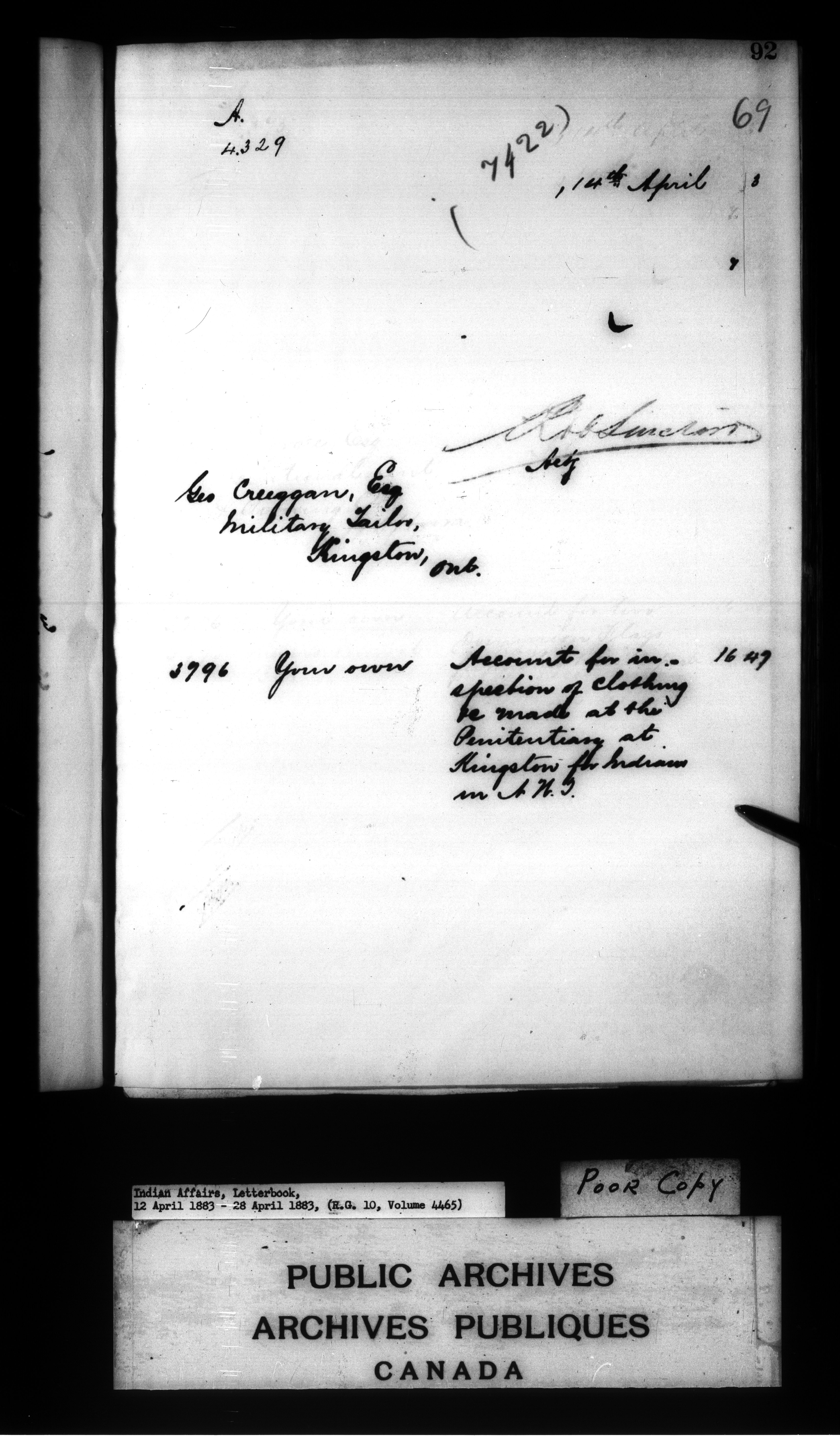 Department of Indian Affairs : Letterbooks of out-going correspondence relating to the administration of Indian Affairs in both eastern and western Canada, 1871-1920 - 7454