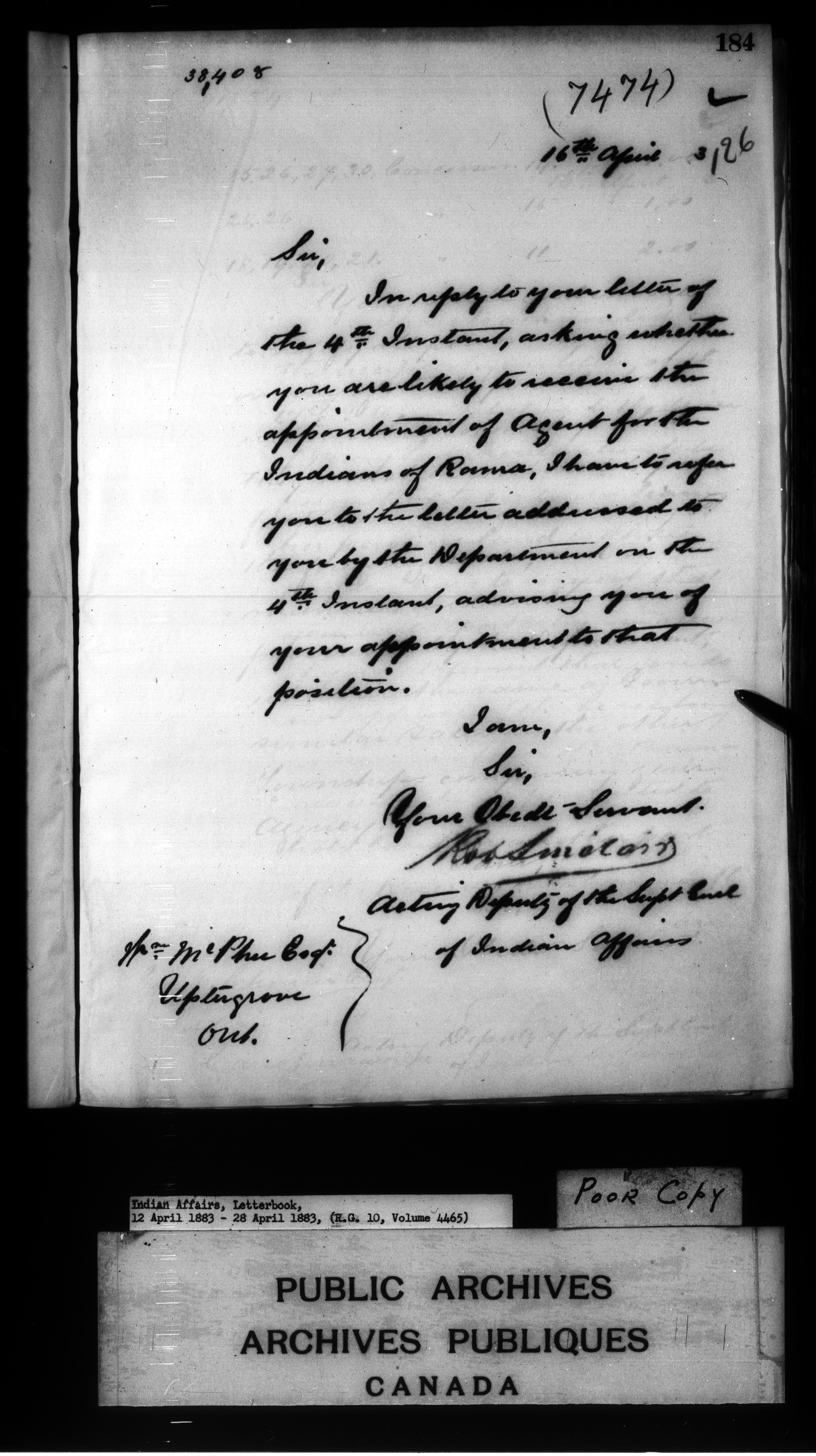 Department of Indian Affairs : Departmental letterbooks : C-7455