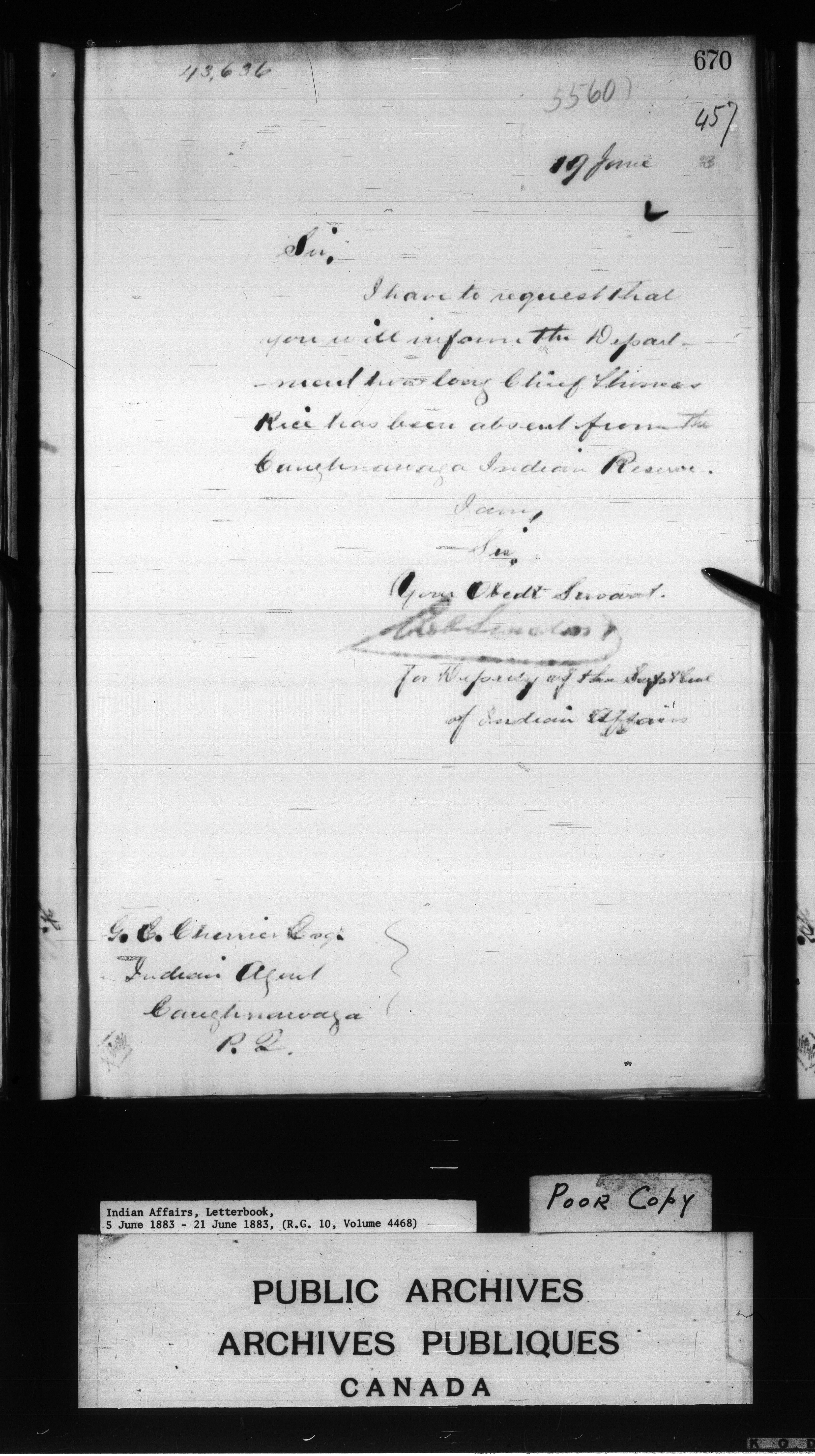 Department of Indian Affairs : Letterbooks of out-going correspondence relating to the administration of Indian Affairs in both eastern and western Canada, 1871-1920 - 7456