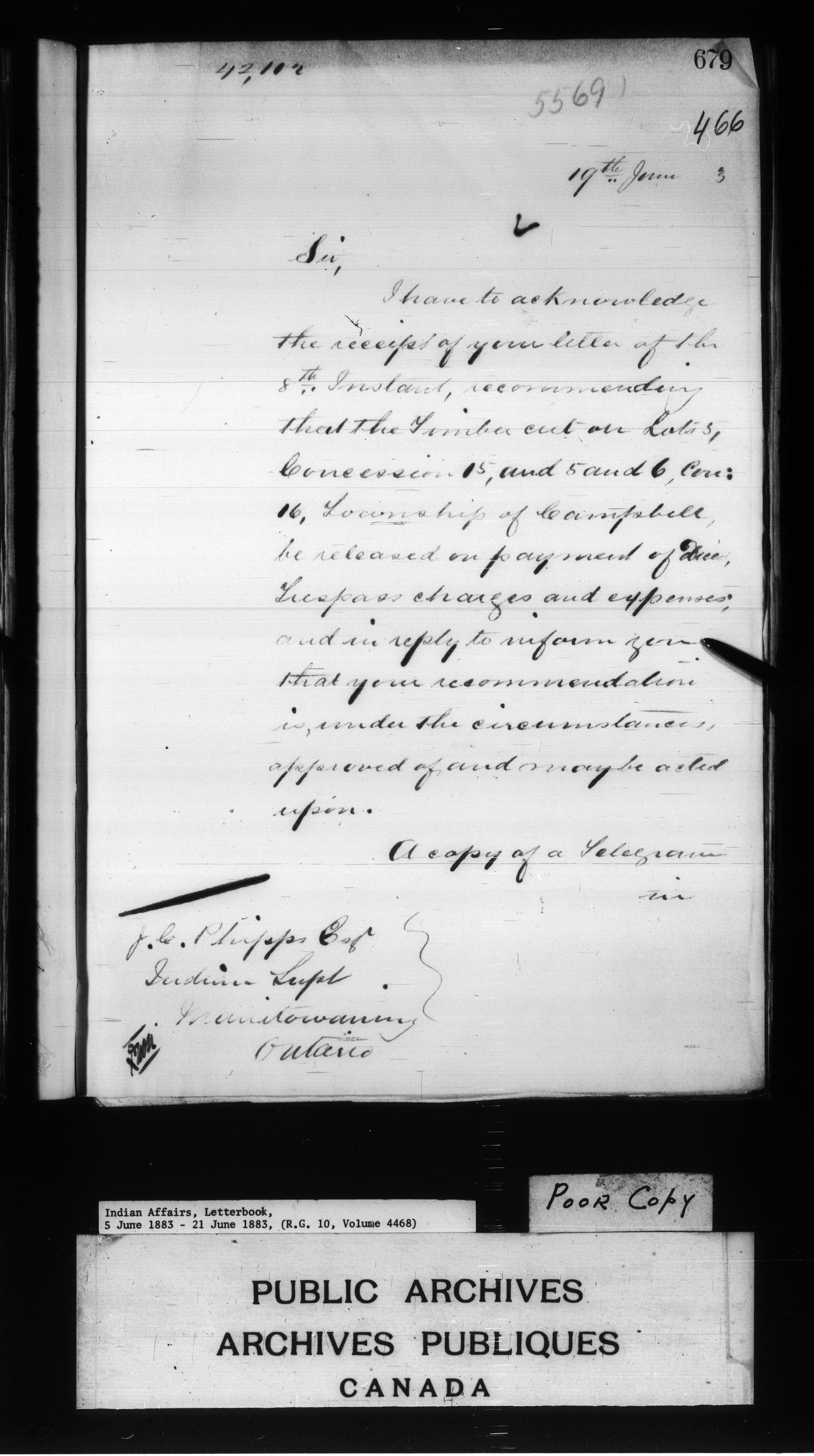 Department of Indian Affairs : Letterbooks of out-going correspondence relating to the administration of Indian Affairs in both eastern and western Canada, 1871-1920 - 7456