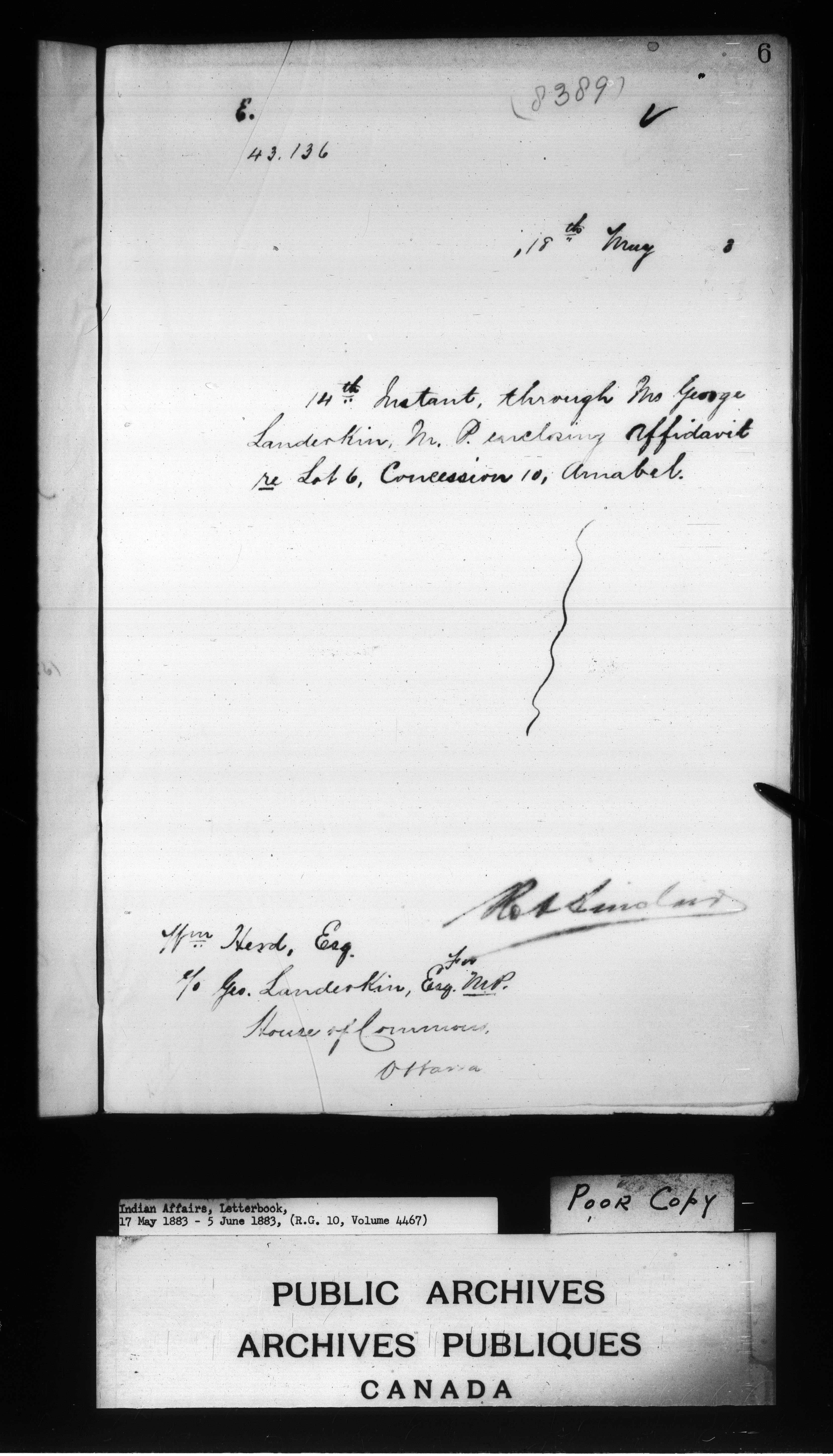 Department of Indian Affairs : Letterbooks of out-going correspondence relating to the administration of Indian Affairs in both eastern and western Canada, 1871-1920 - 7456