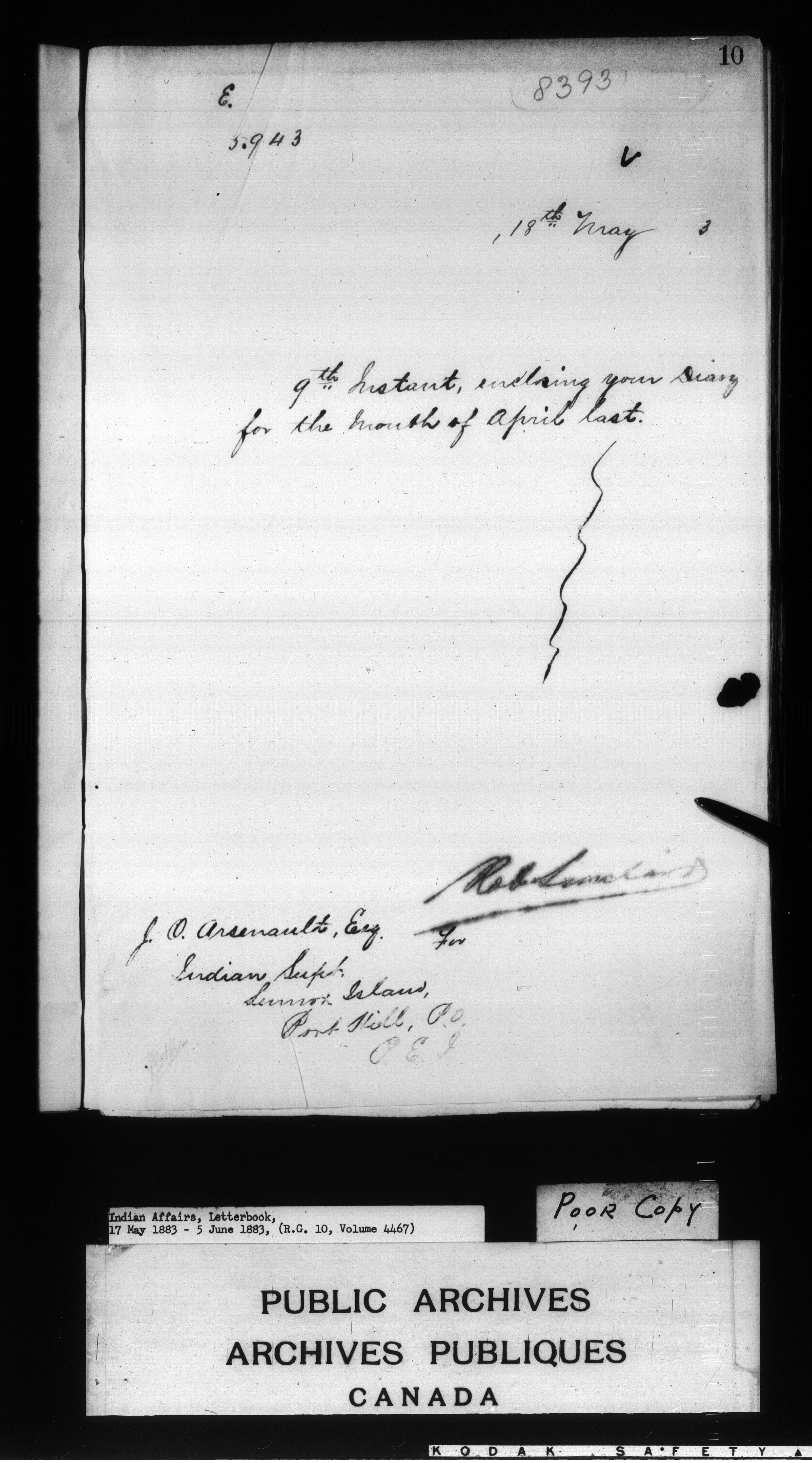 Department of Indian Affairs : Letterbooks of out-going correspondence relating to the administration of Indian Affairs in both eastern and western Canada, 1871-1920 - 7456