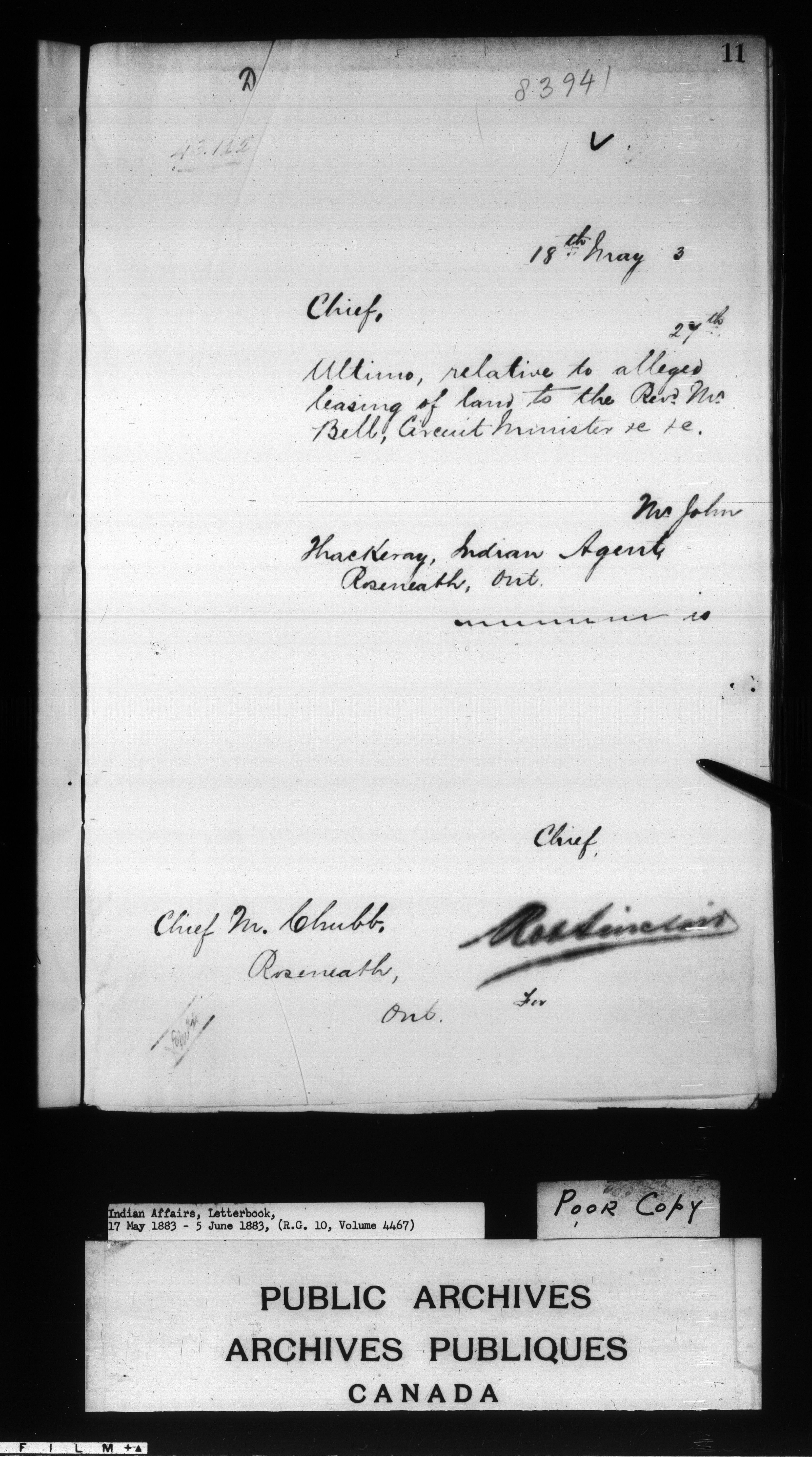 Department of Indian Affairs : Letterbooks of out-going correspondence relating to the administration of Indian Affairs in both eastern and western Canada, 1871-1920 - 7456