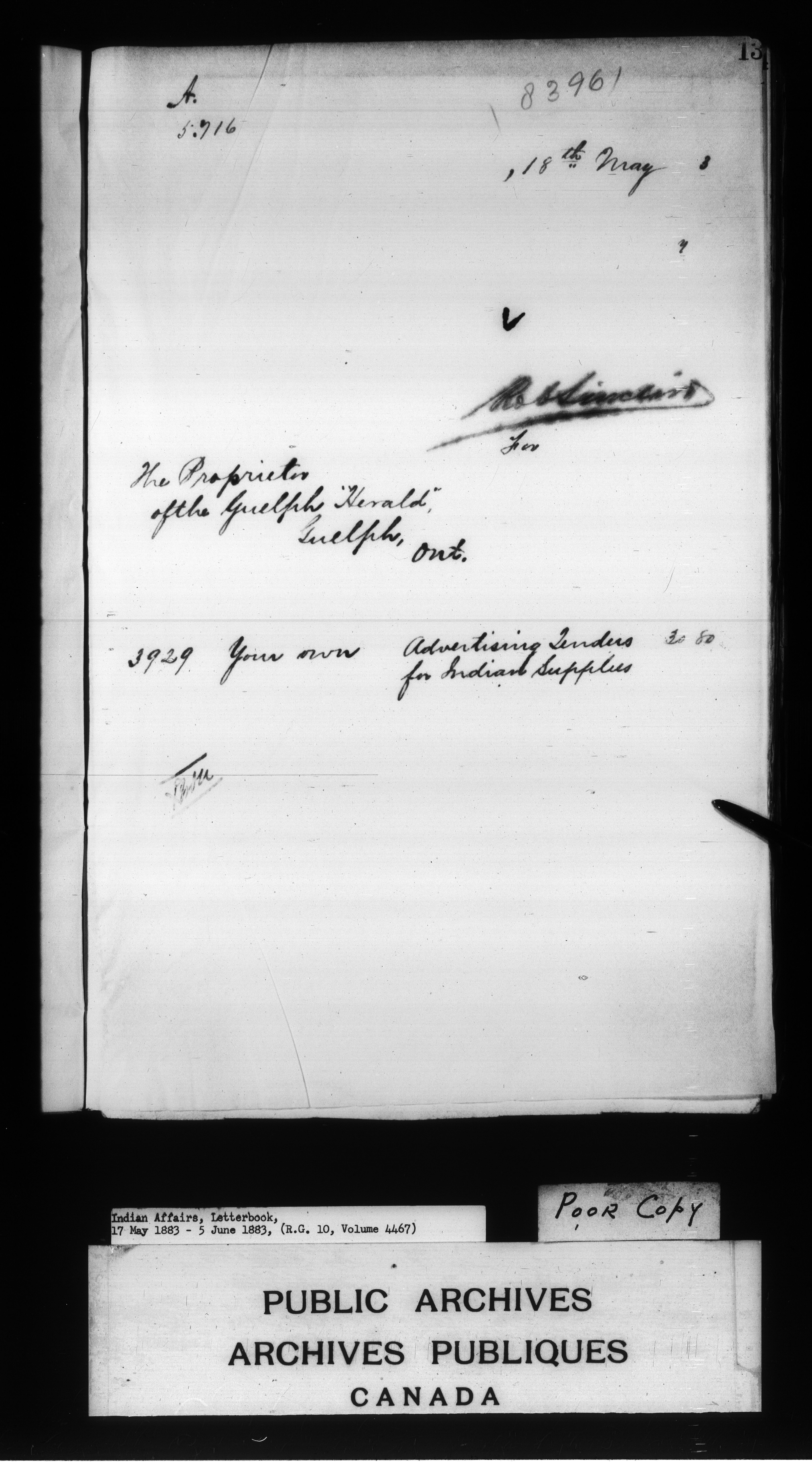 Department of Indian Affairs : Letterbooks of out-going correspondence relating to the administration of Indian Affairs in both eastern and western Canada, 1871-1920 - 7456