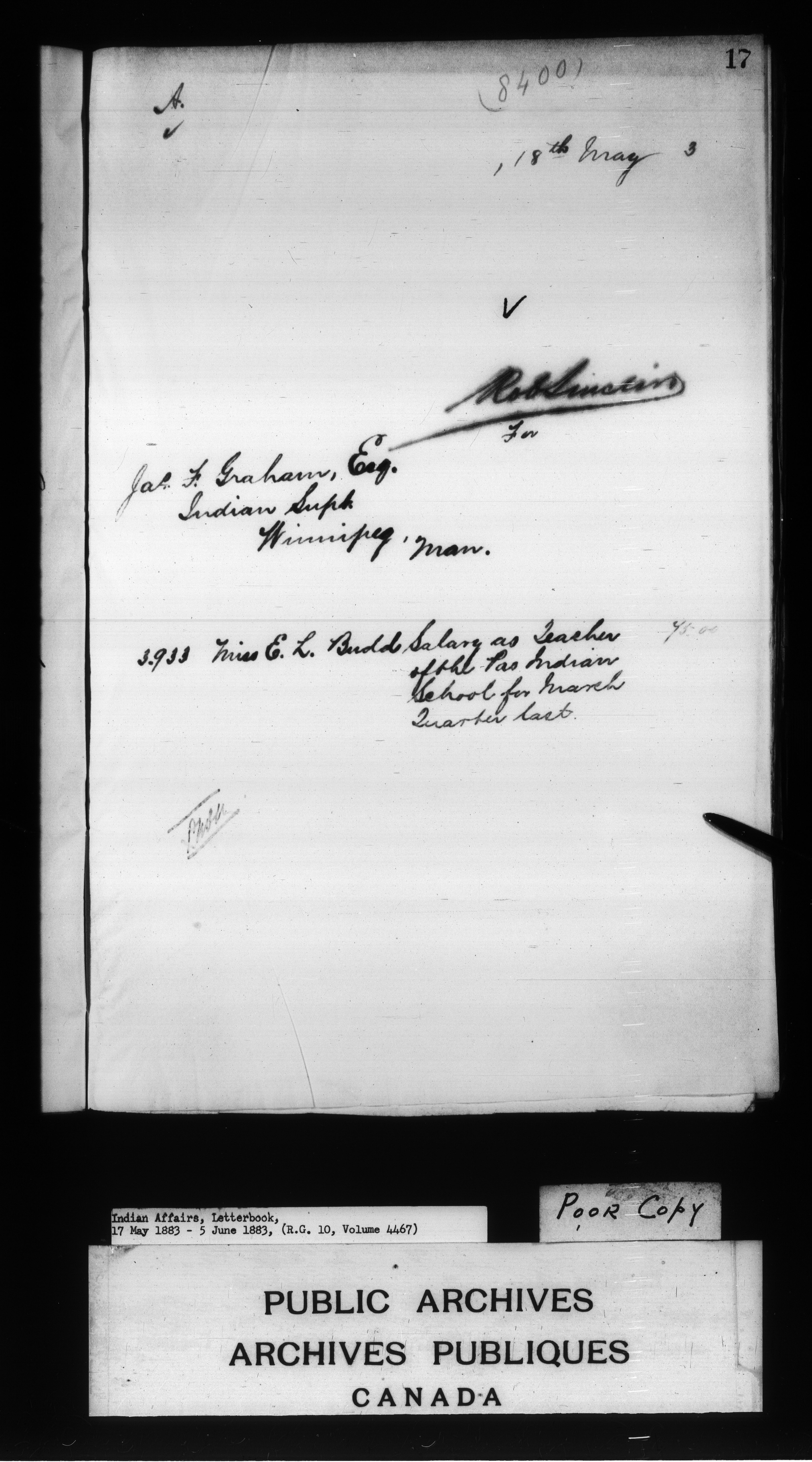 Department of Indian Affairs : Letterbooks of out-going correspondence relating to the administration of Indian Affairs in both eastern and western Canada, 1871-1920 - 7456