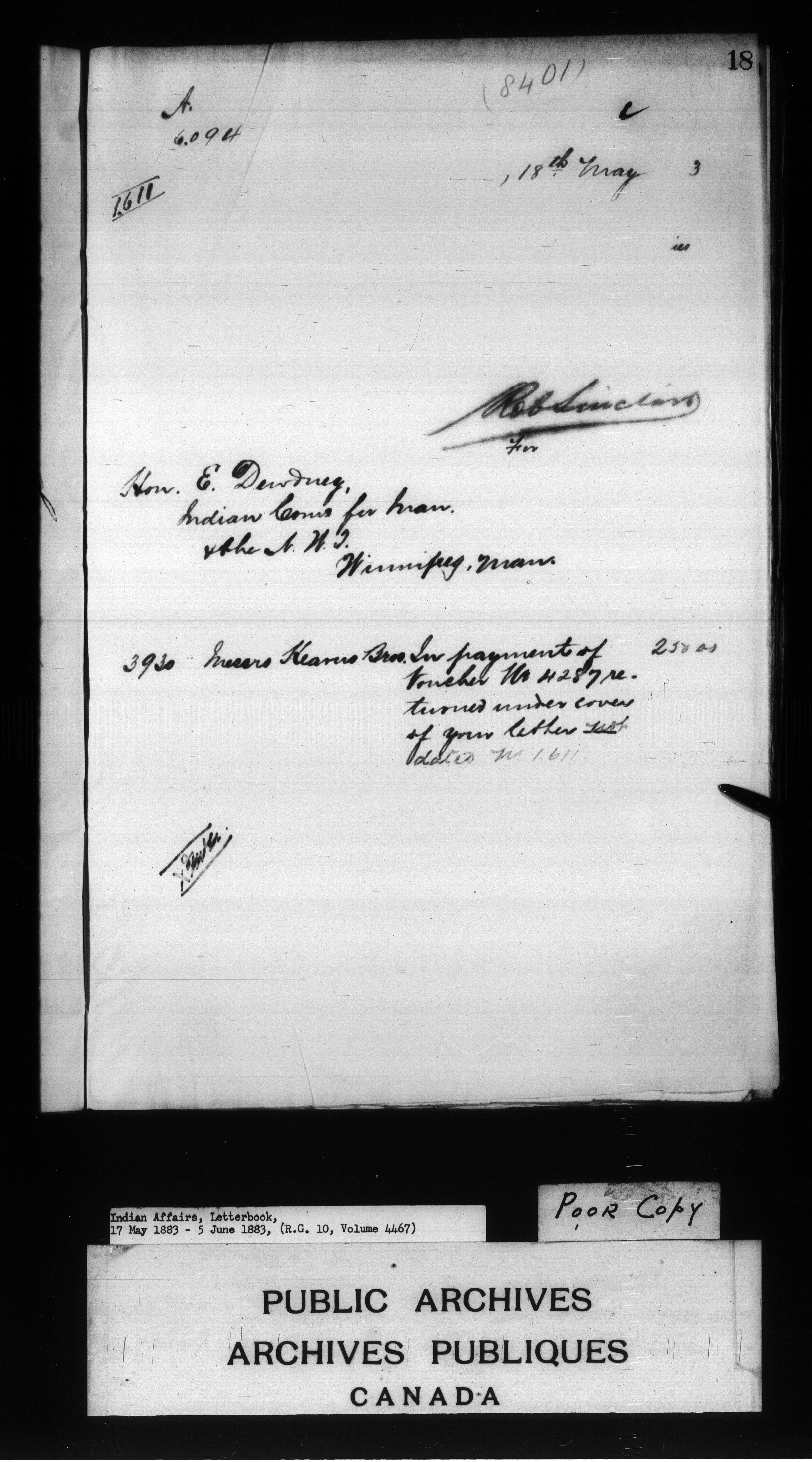 Department of Indian Affairs : Letterbooks of out-going correspondence relating to the administration of Indian Affairs in both eastern and western Canada, 1871-1920 - 7456