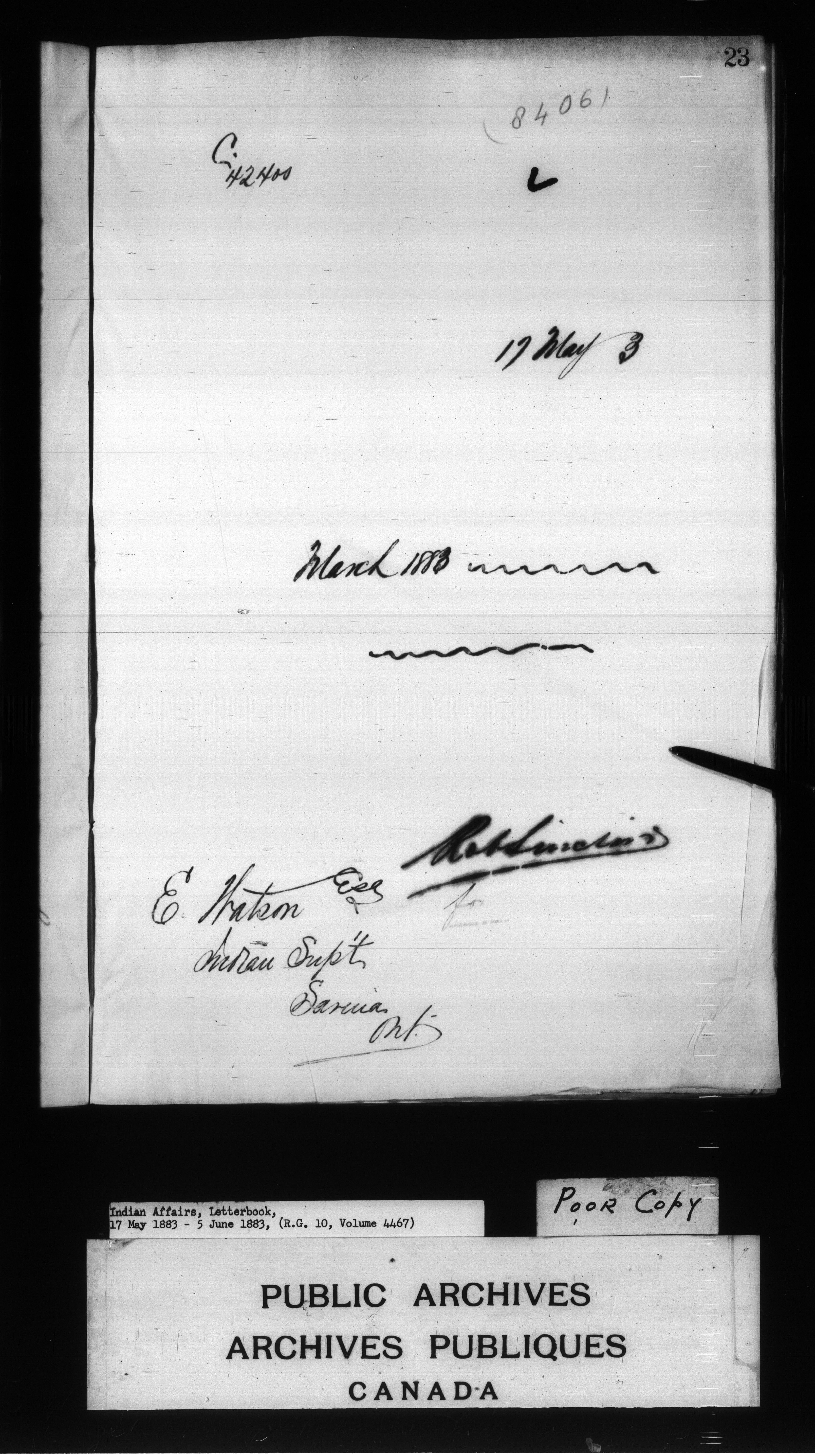 Department of Indian Affairs : Letterbooks of out-going correspondence relating to the administration of Indian Affairs in both eastern and western Canada, 1871-1920 - 7456
