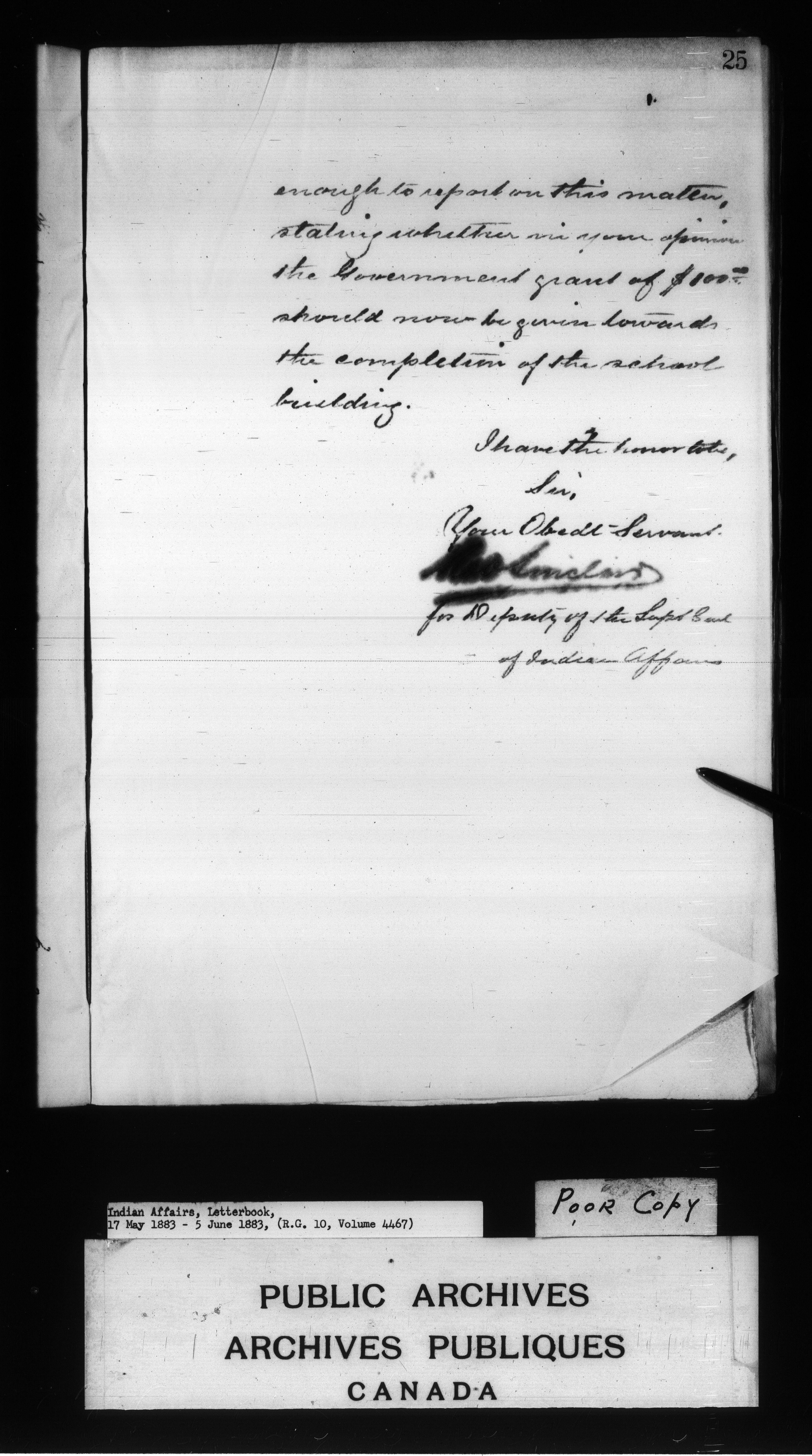Department of Indian Affairs : Letterbooks of out-going correspondence relating to the administration of Indian Affairs in both eastern and western Canada, 1871-1920 - 7456
