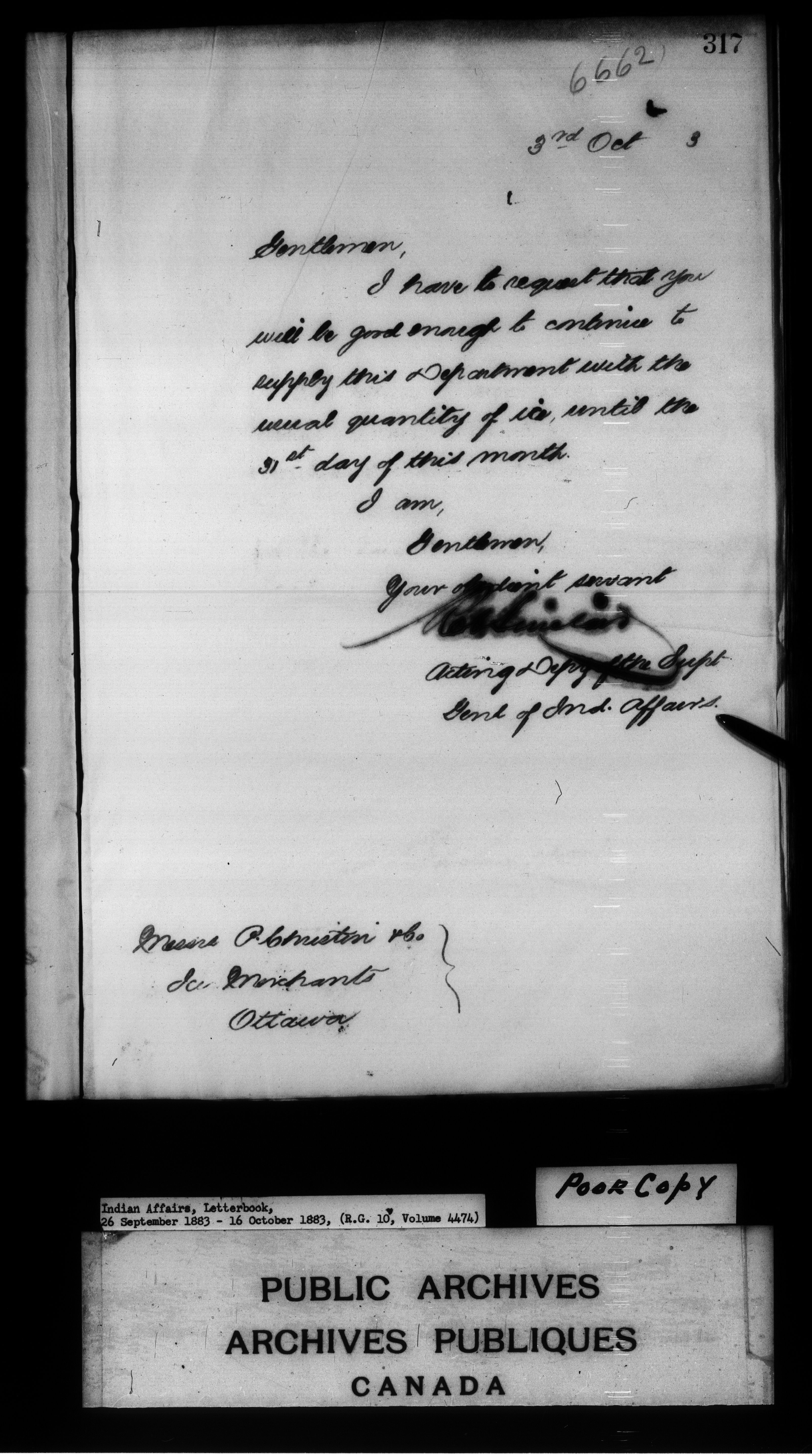 Department of Indian Affairs : Letterbooks of out-going correspondence relating to the administration of Indian Affairs in both eastern and western Canada, 1871-1920 - 7459