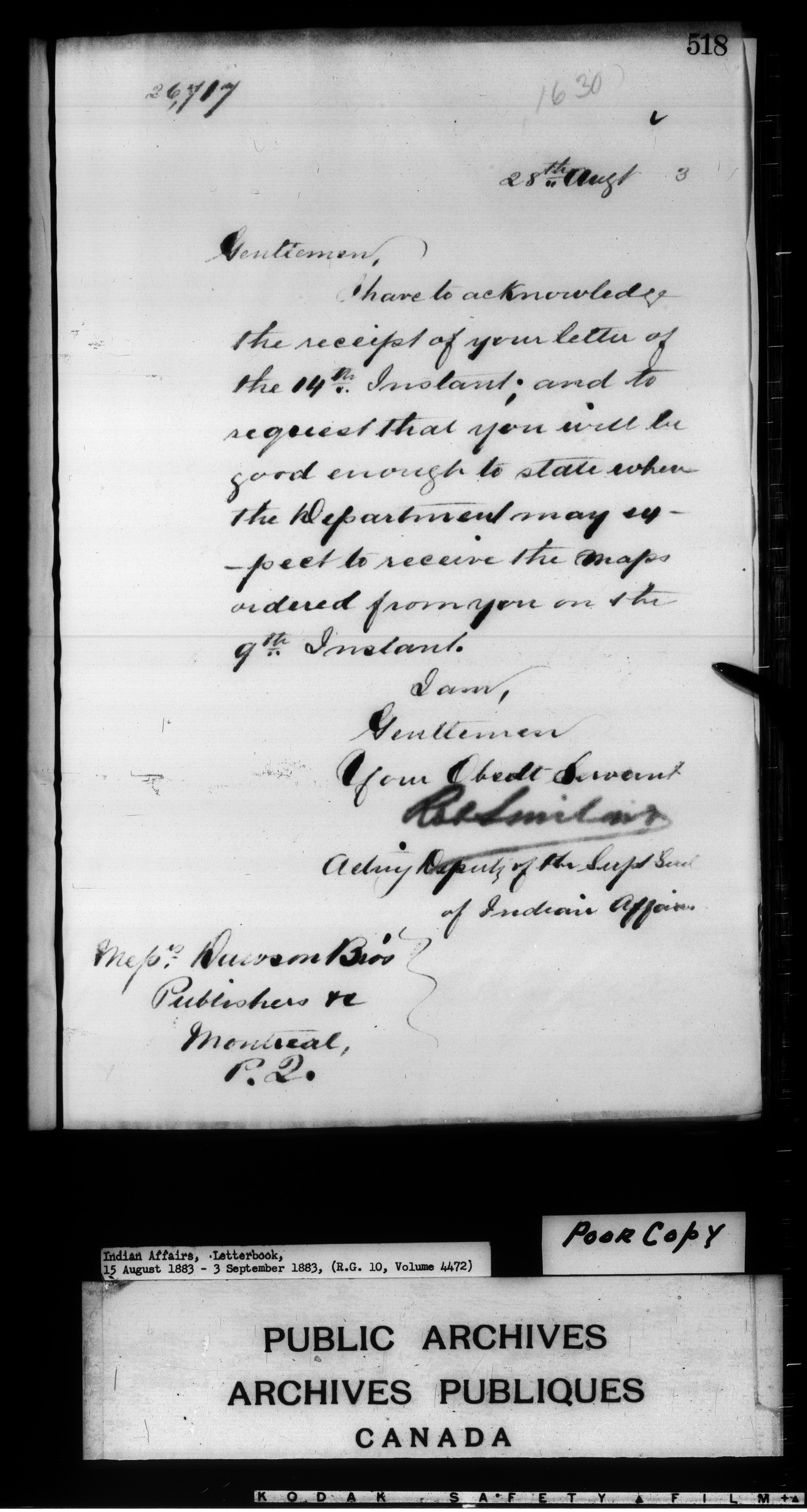 Department of Indian Affairs : Letterbooks of out-going correspondence relating to the administration of Indian Affairs in both eastern and western Canada, 1871-1920 - 7459