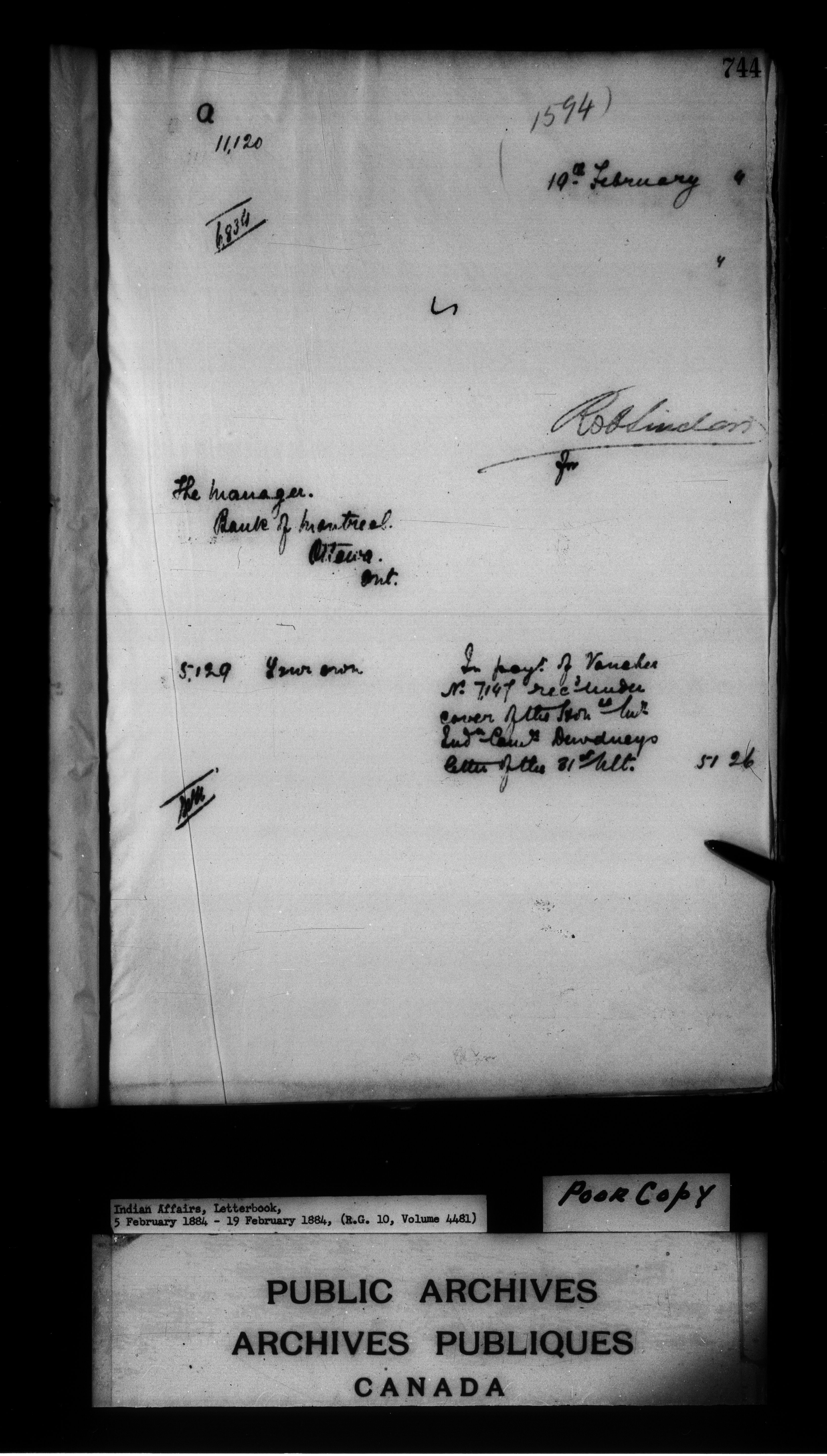 Department of Indian Affairs : Letterbooks of out-going correspondence relating to the administration of Indian Affairs in both eastern and western Canada, 1871-1920 - 7464