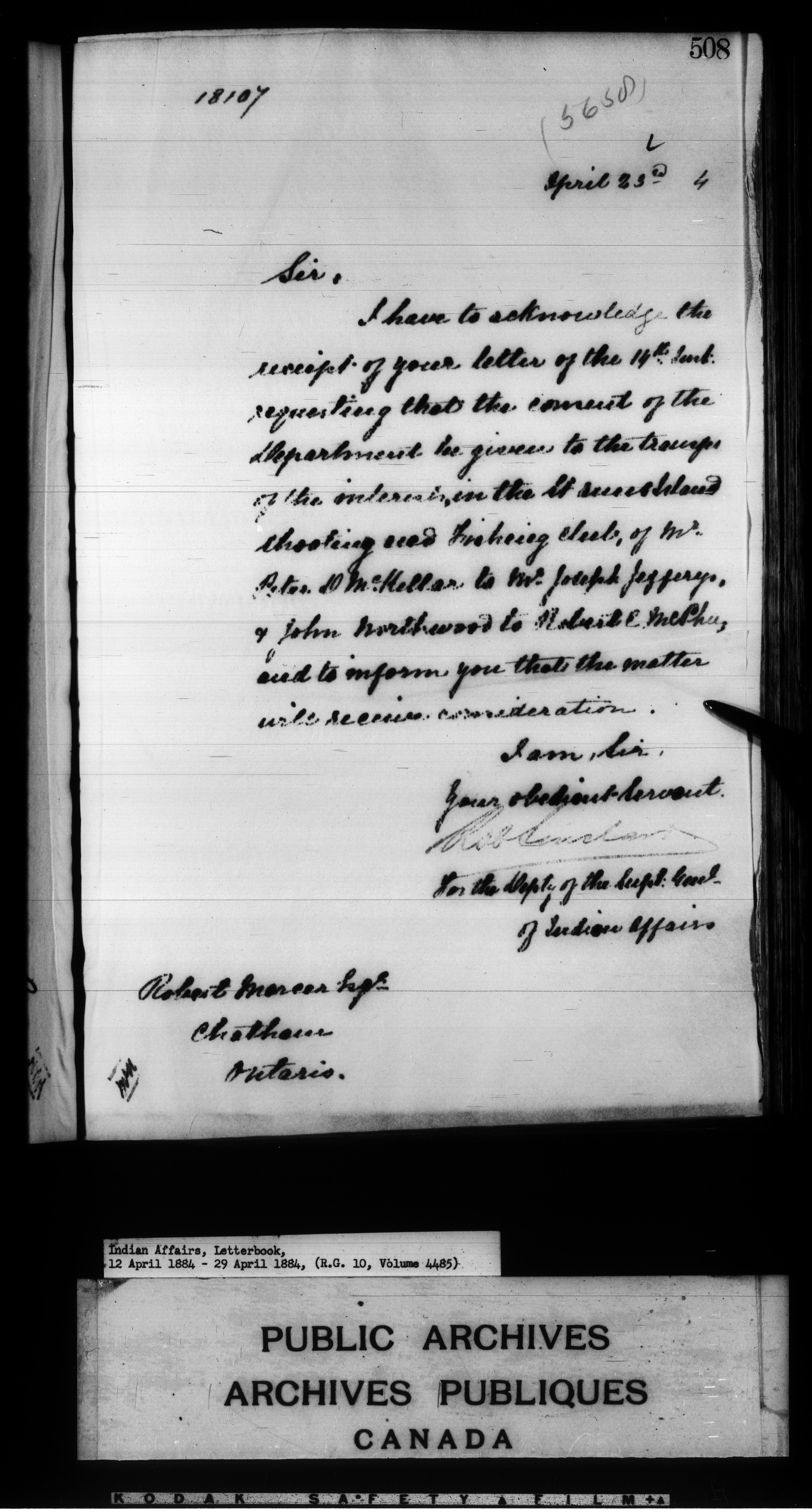 Department of Indian Affairs : Letterbooks of out-going correspondence relating to the administration of Indian Affairs in both eastern and western Canada, 1871-1920 - 7466