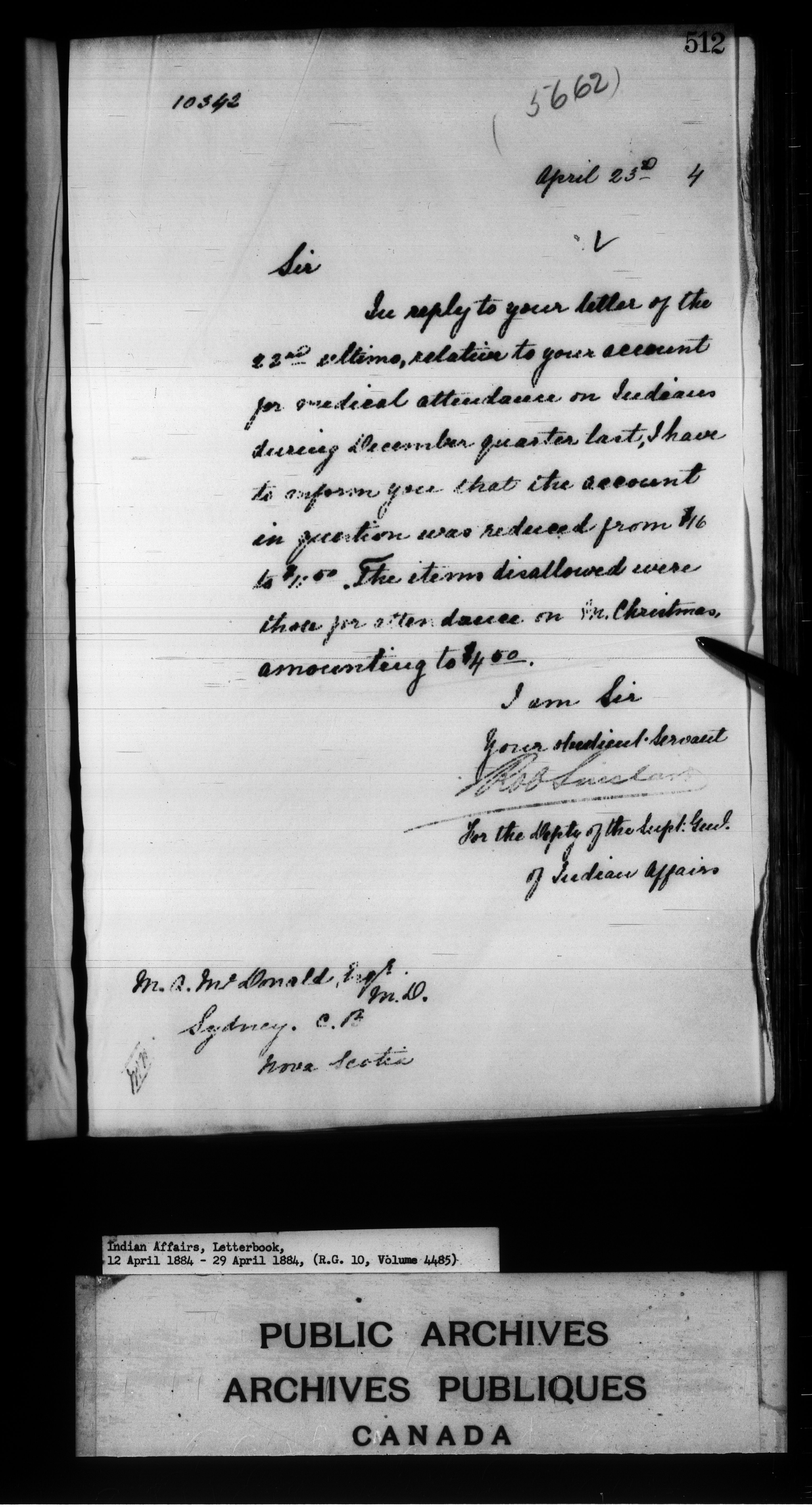 Department of Indian Affairs : Letterbooks of out-going correspondence relating to the administration of Indian Affairs in both eastern and western Canada, 1871-1920 - 7466