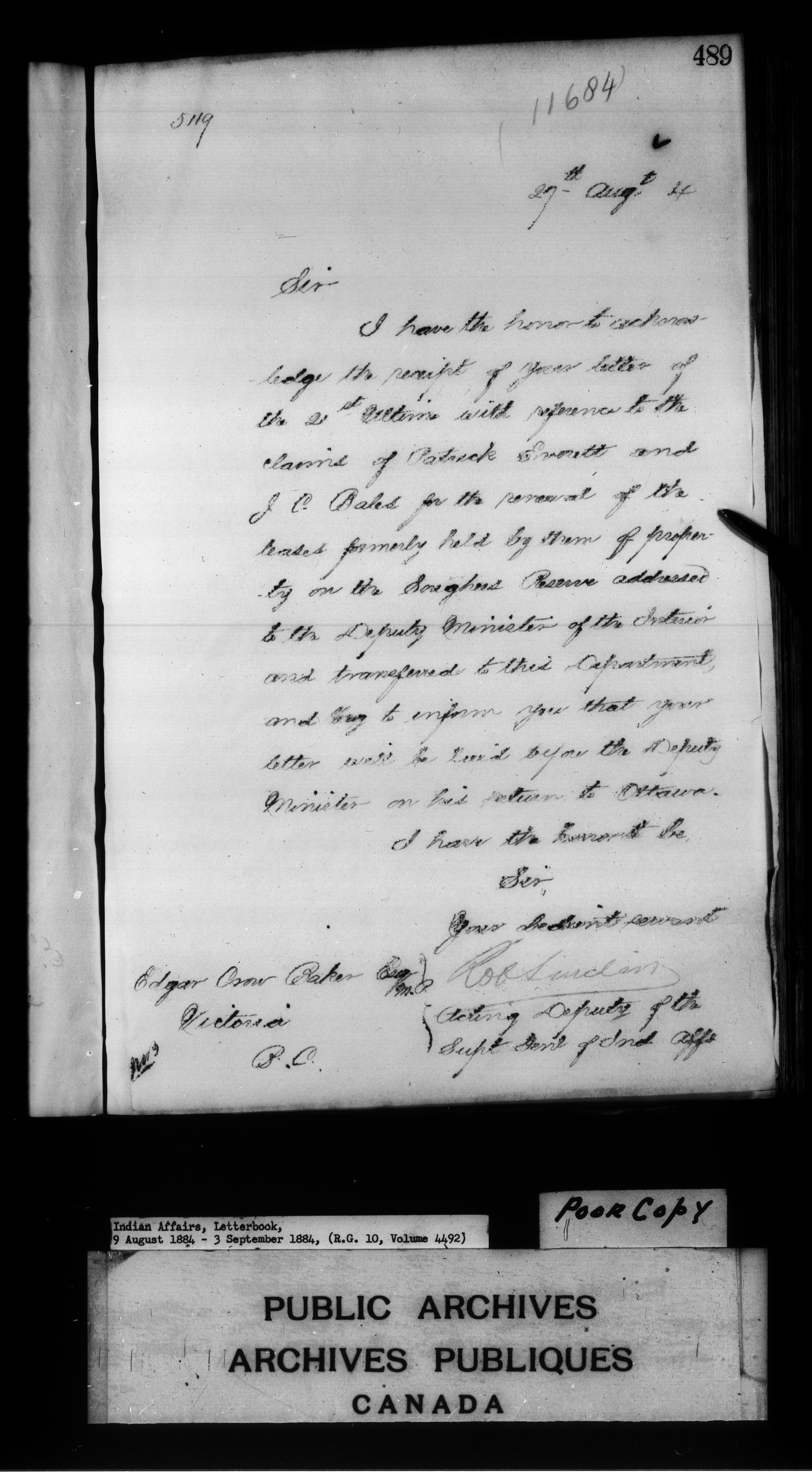 Department of Indian Affairs : Letterbooks of out-going correspondence relating to the administration of Indian Affairs in both eastern and western Canada, 1871-1920 - 7470