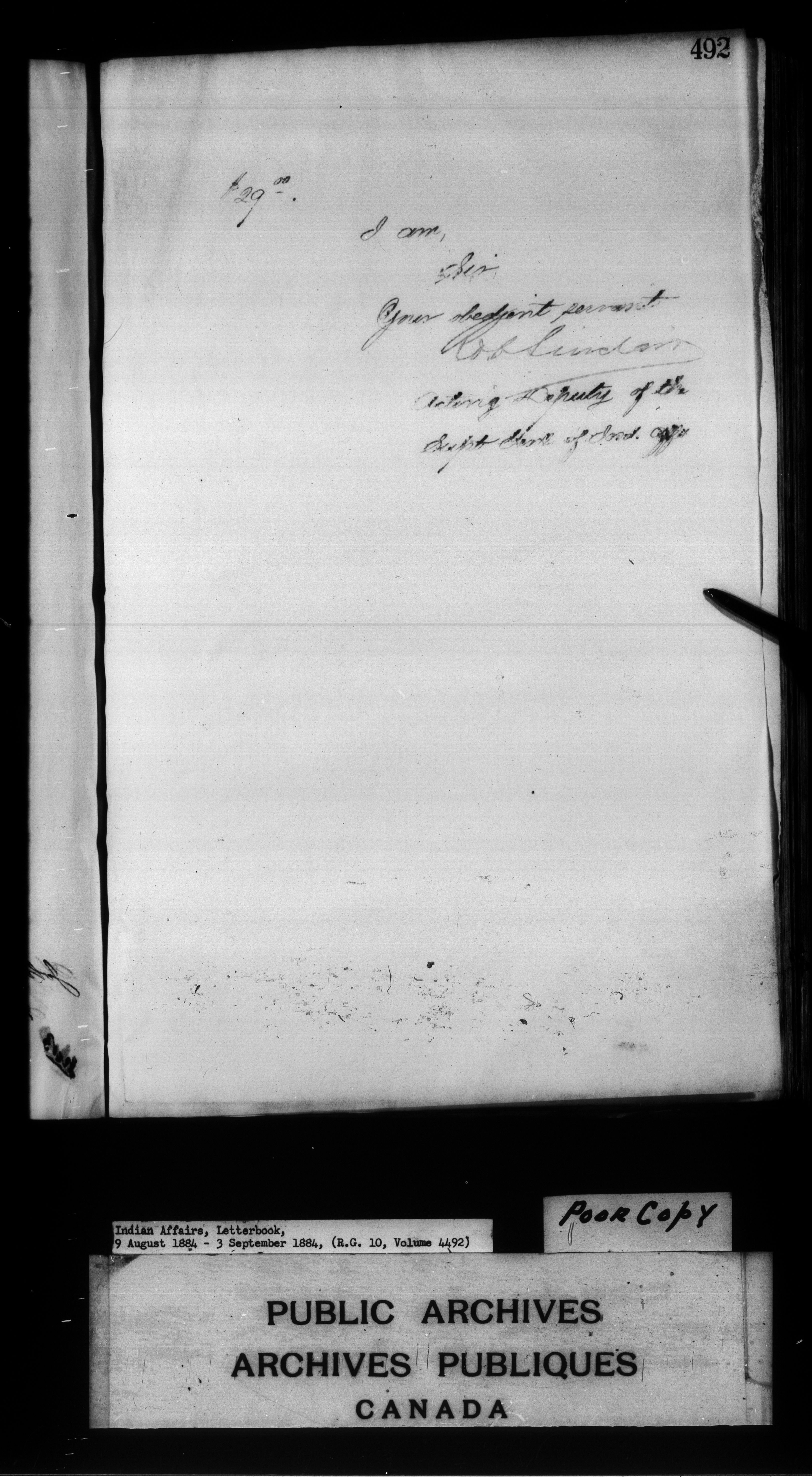 Department of Indian Affairs : Letterbooks of out-going correspondence relating to the administration of Indian Affairs in both eastern and western Canada, 1871-1920 - 7470