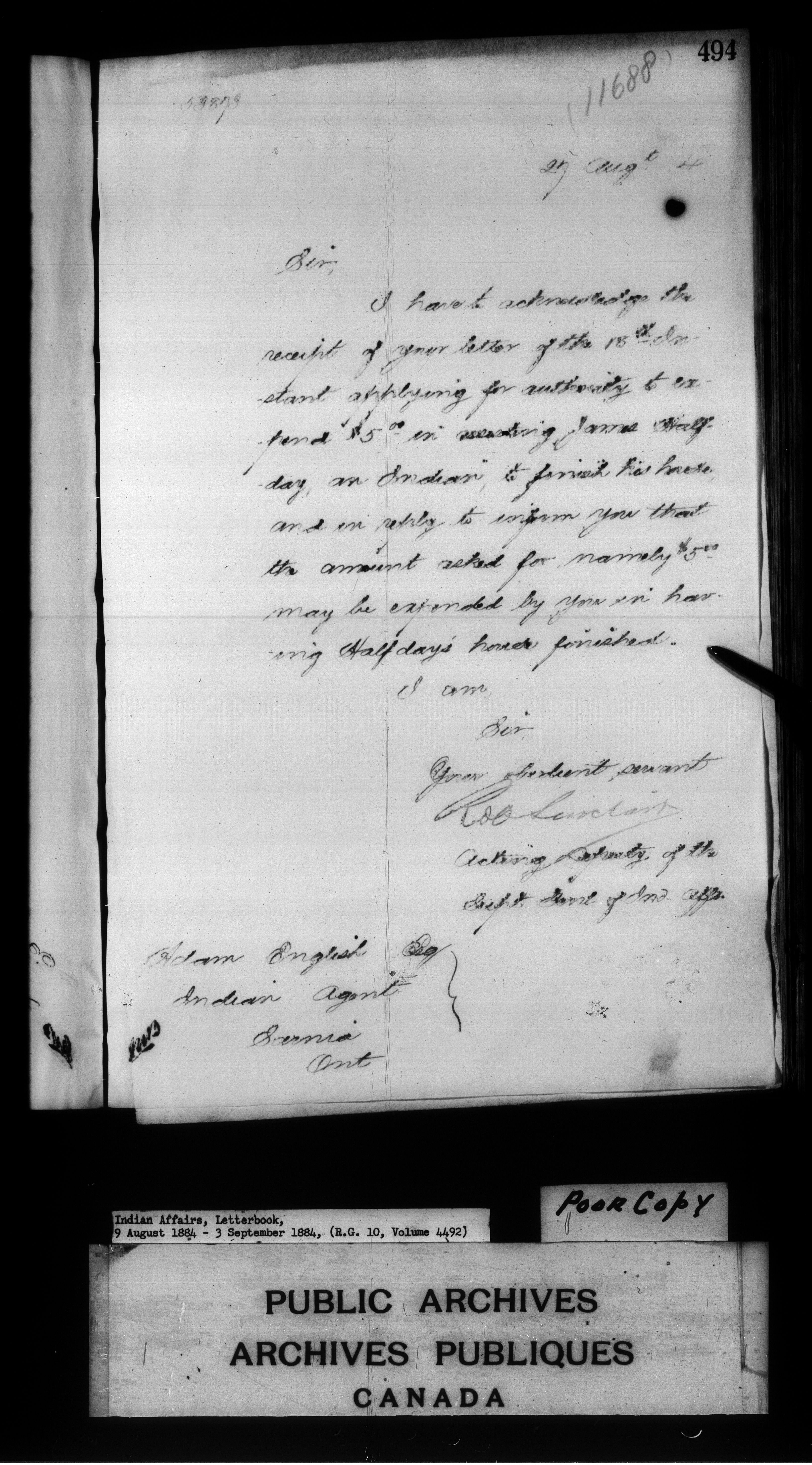 Department of Indian Affairs : Letterbooks of out-going correspondence relating to the administration of Indian Affairs in both eastern and western Canada, 1871-1920 - 7470