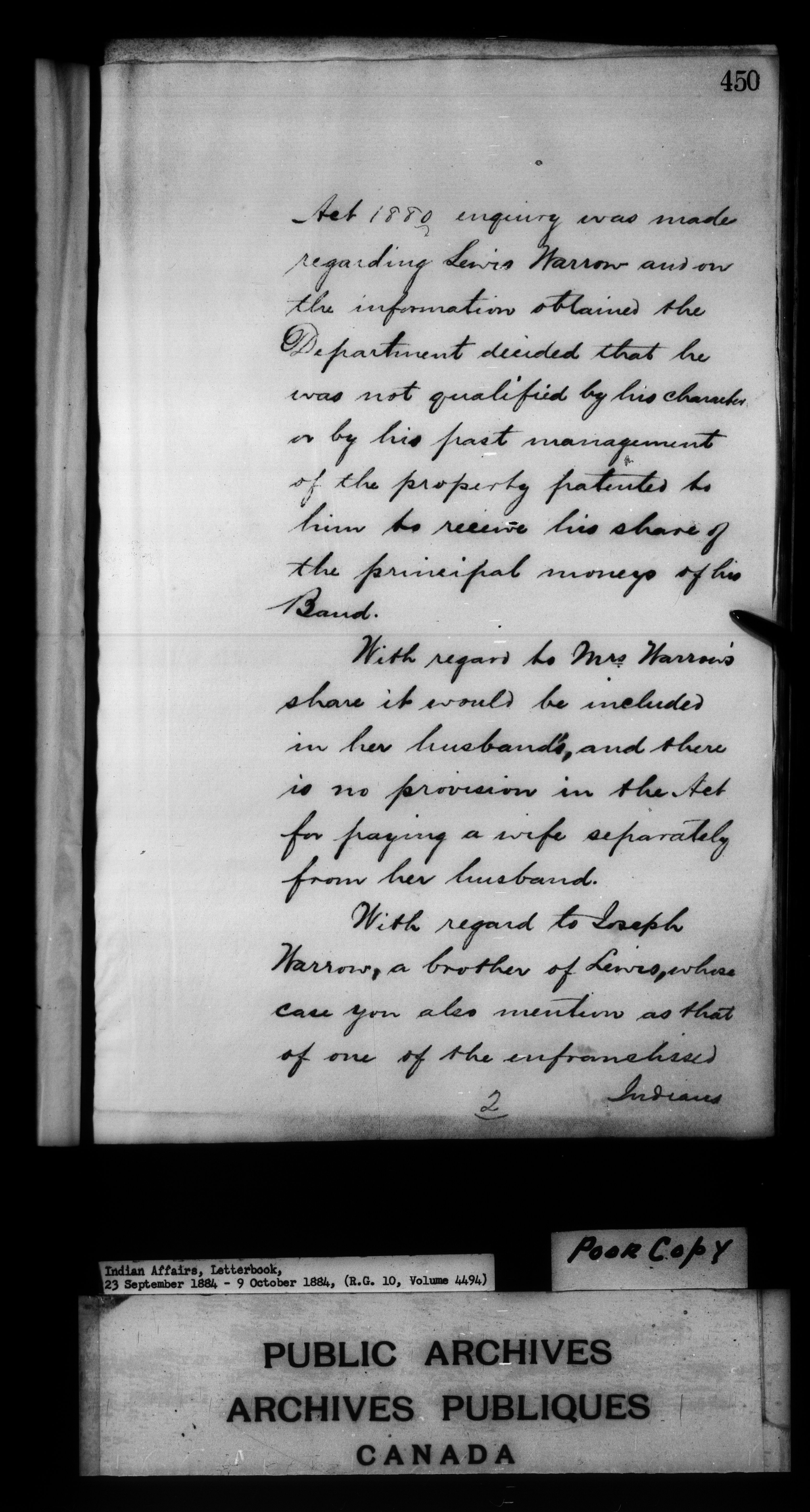 Department of Indian Affairs : Letterbooks of out-going correspondence relating to the administration of Indian Affairs in both eastern and western Canada, 1871-1920 - 7471