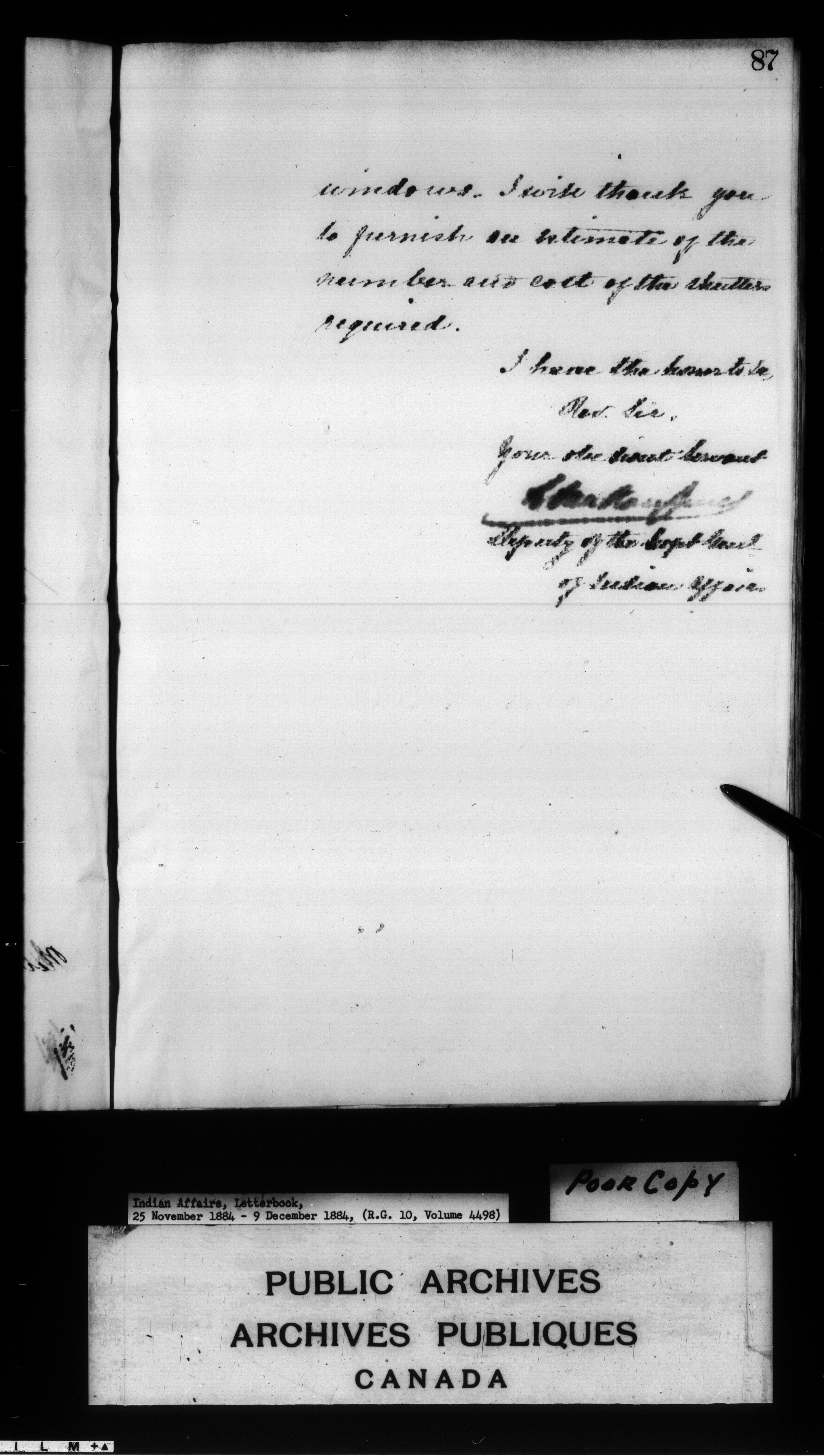 Department of Indian Affairs : Letterbooks of out-going correspondence relating to the administration of Indian Affairs in both eastern and western Canada, 1871-1920 - 7472