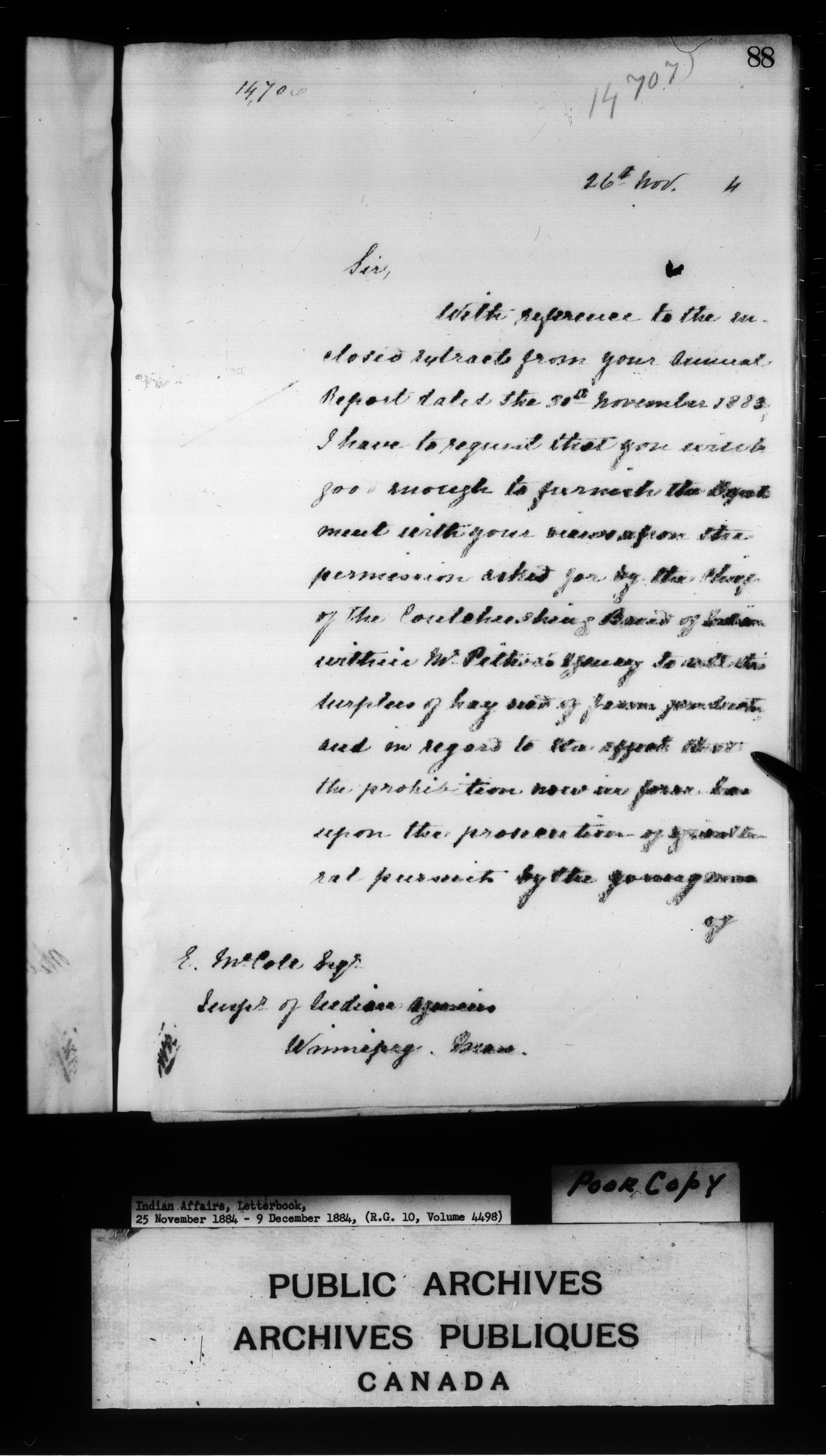 Department of Indian Affairs : Letterbooks of out-going correspondence relating to the administration of Indian Affairs in both eastern and western Canada, 1871-1920 - 7472