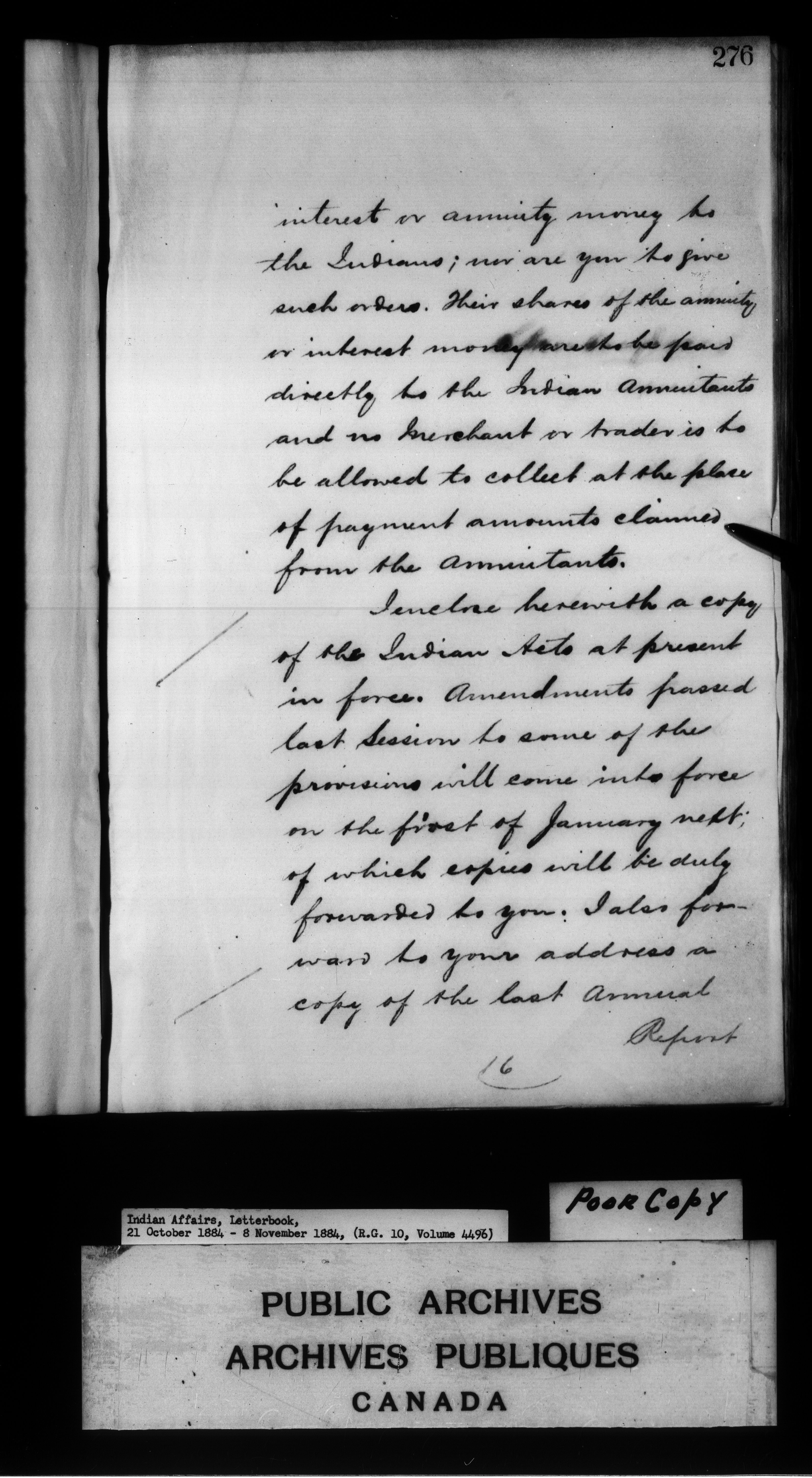 Department of Indian Affairs : Letterbooks of out-going correspondence relating to the administration of Indian Affairs in both eastern and western Canada, 1871-1920 - 7472
