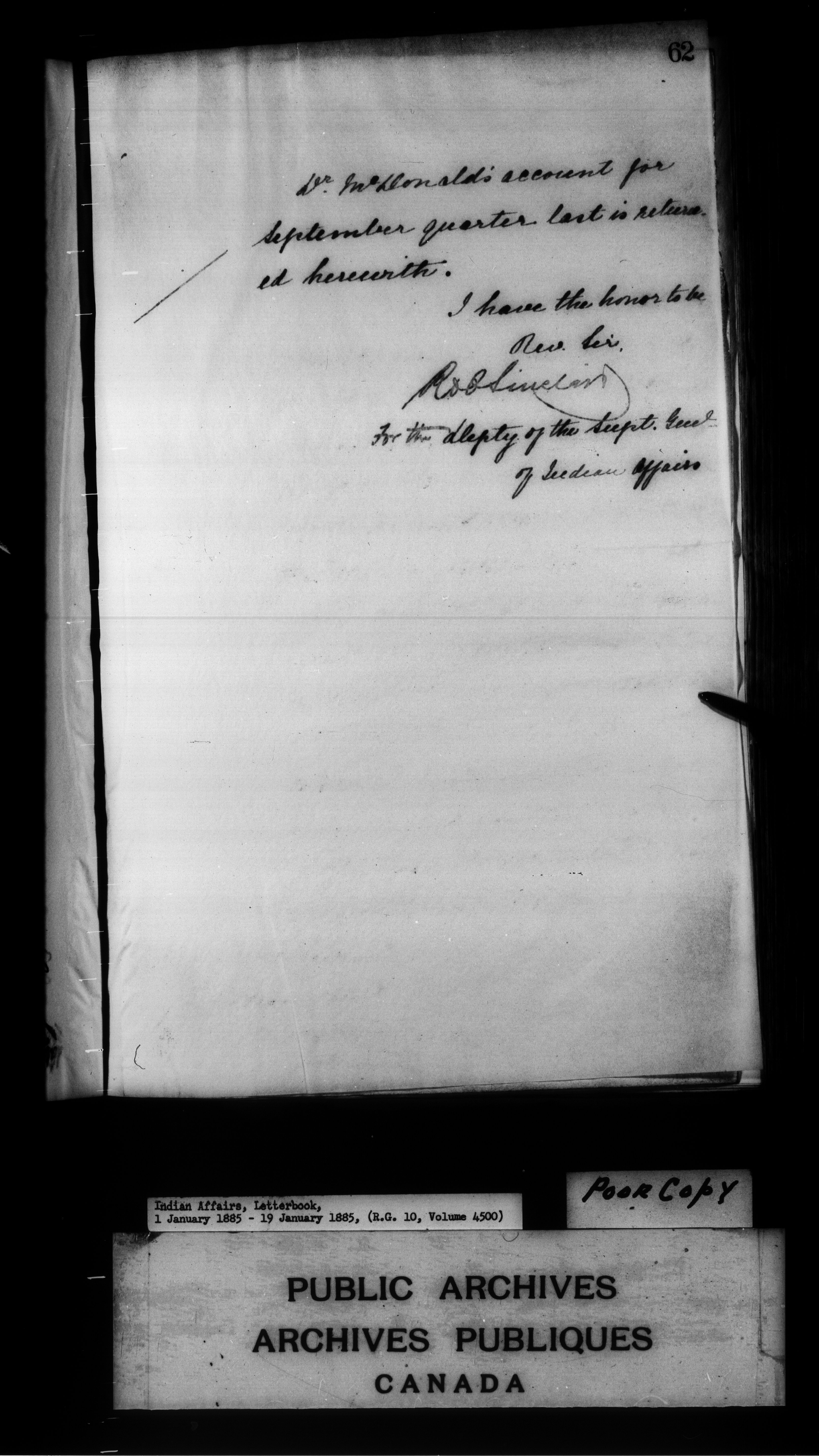 Department of Indian Affairs : Letterbooks of out-going correspondence relating to the administration of Indian Affairs in both eastern and western Canada, 1871-1920 - 7474