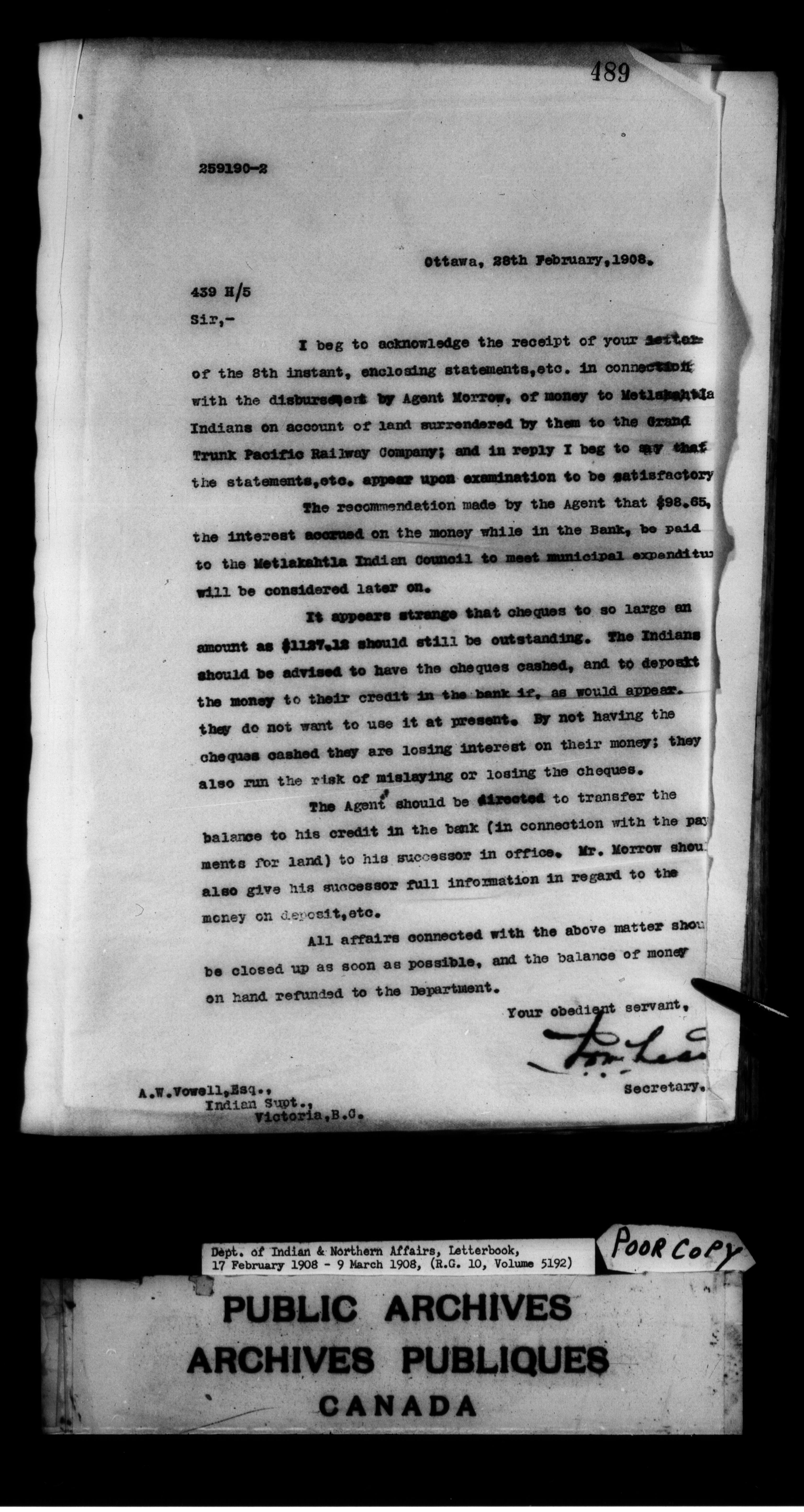 Department of Indian Affairs : Letterbooks of out-going correspondence relating to the administration of Indian Affairs in both eastern and western Canada, 1871-1920 - 7481