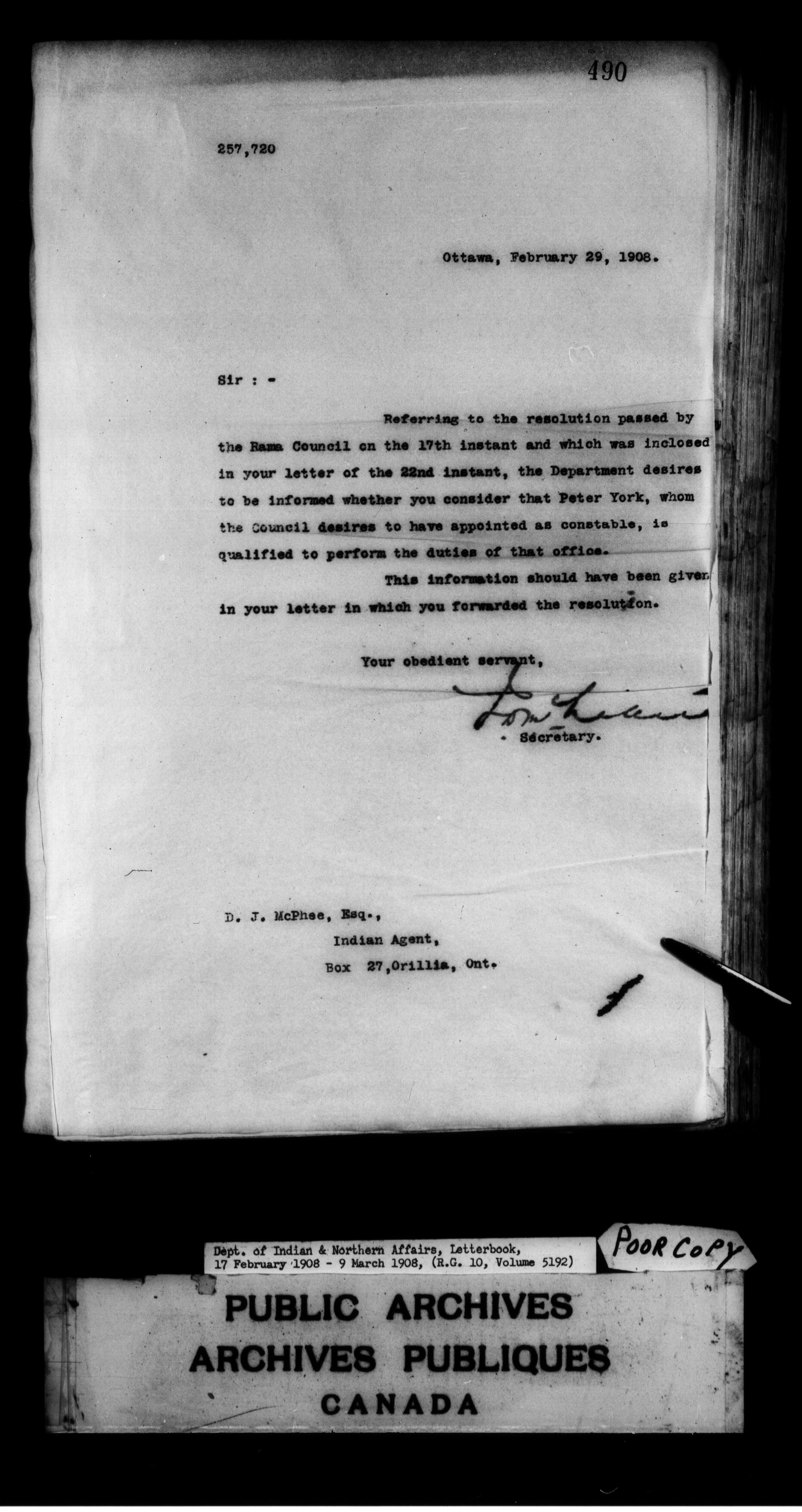 Department of Indian Affairs : Letterbooks of out-going correspondence relating to the administration of Indian Affairs in both eastern and western Canada, 1871-1920 - 7481