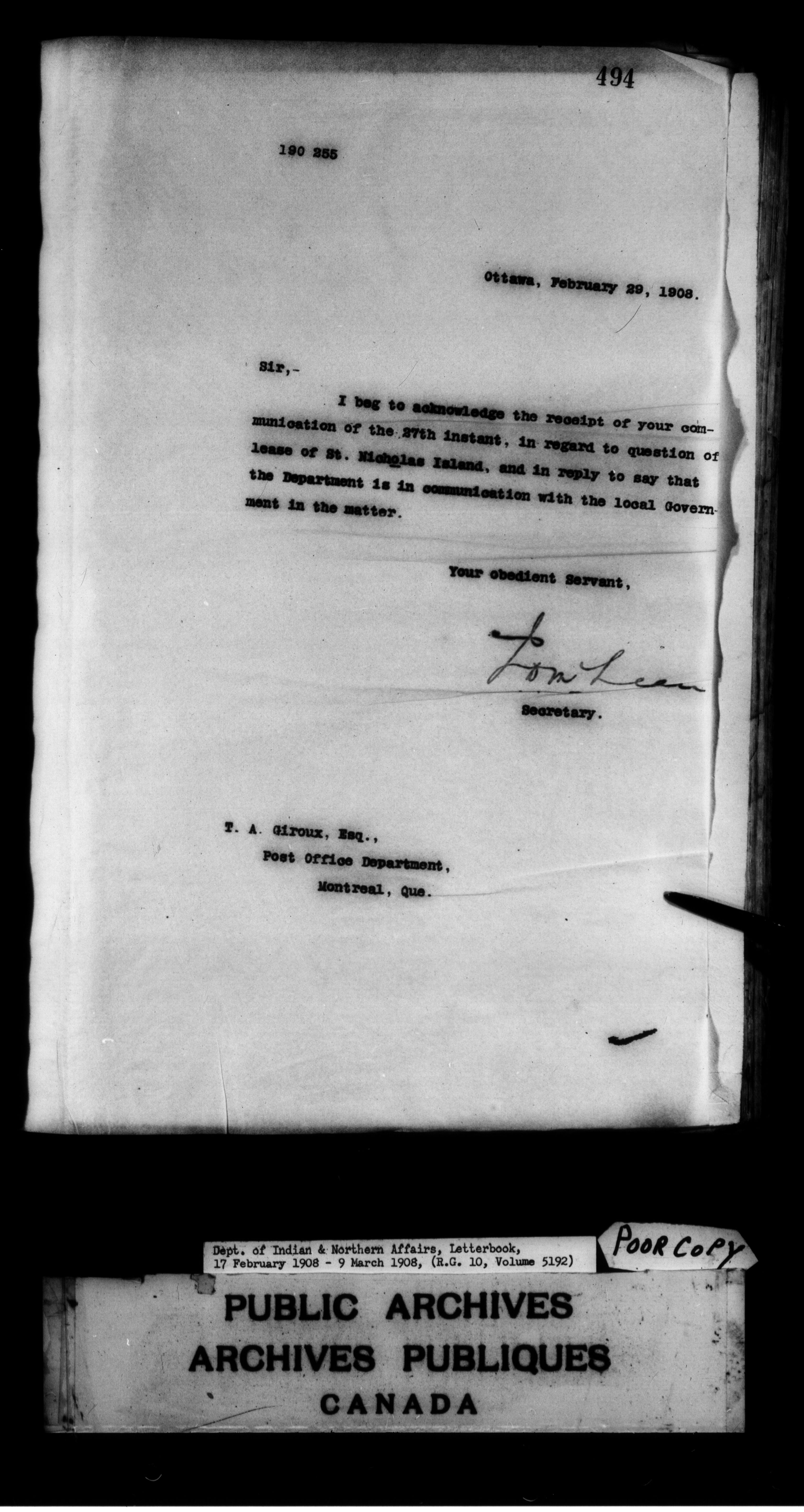 Department of Indian Affairs : Departmental letterbooks : C-7481