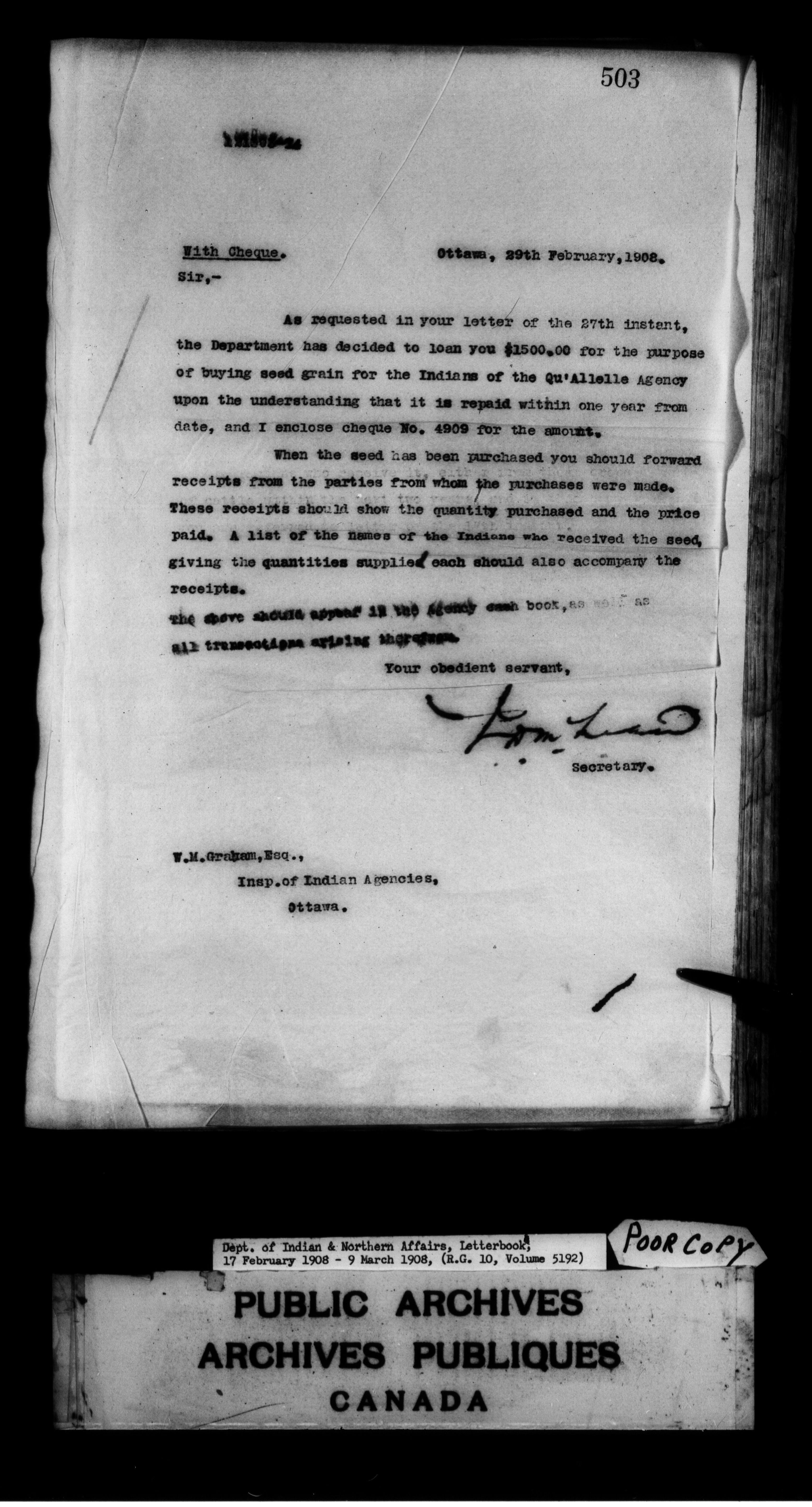 Department of Indian Affairs : Letterbooks of out-going correspondence relating to the administration of Indian Affairs in both eastern and western Canada, 1871-1920 - 7481