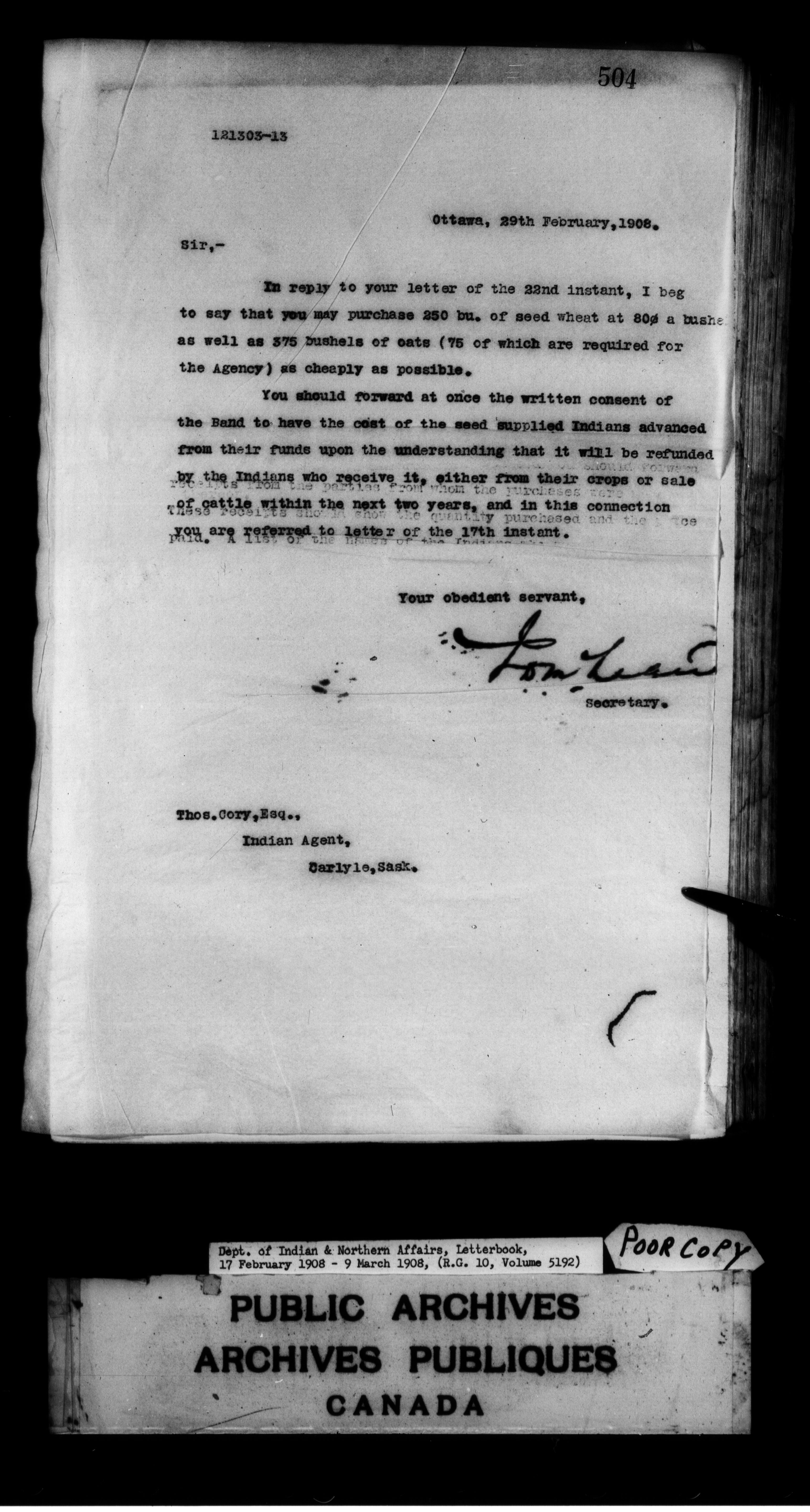 Department of Indian Affairs : Letterbooks of out-going correspondence relating to the administration of Indian Affairs in both eastern and western Canada, 1871-1920 - 7481