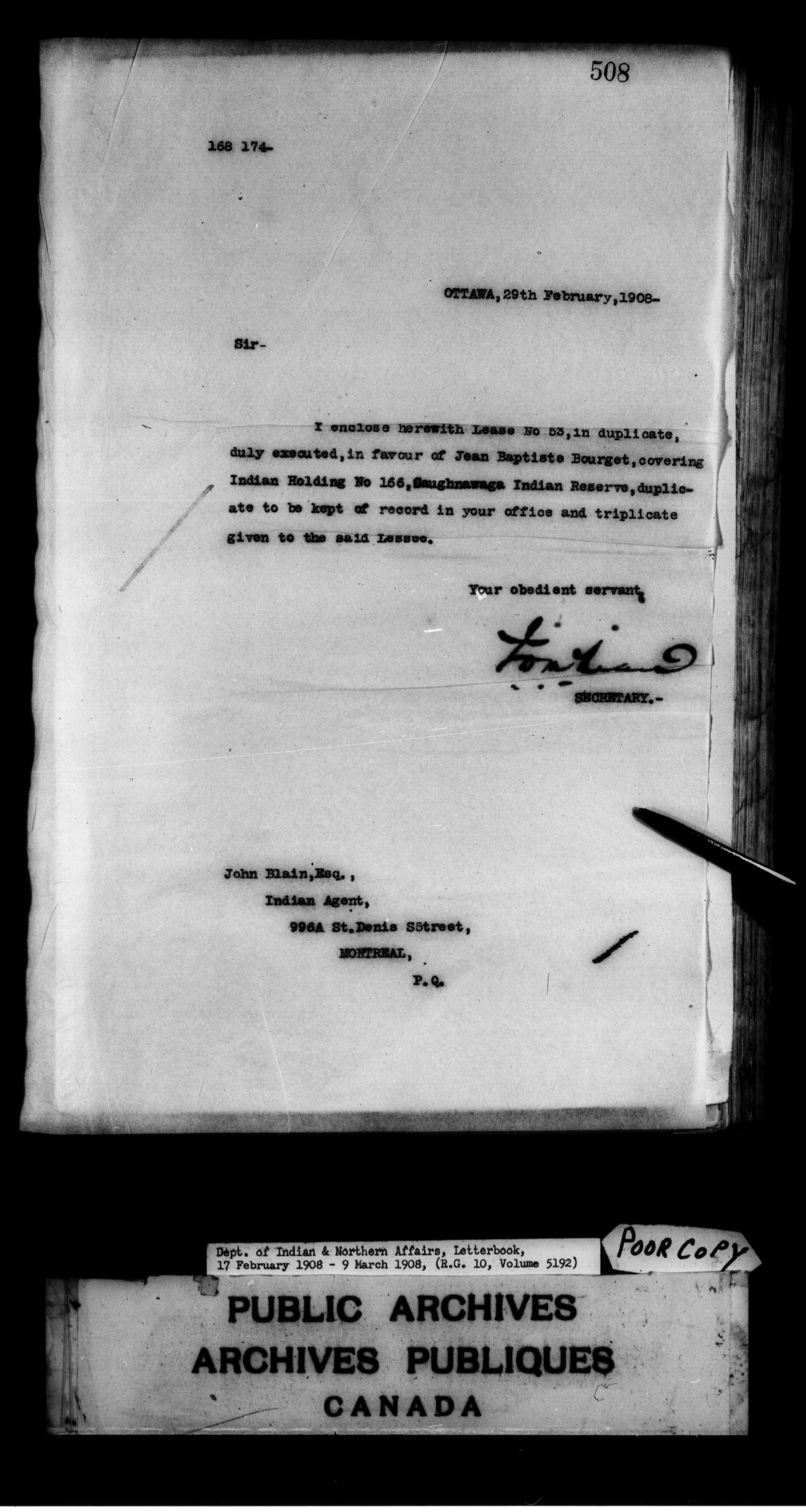 Department of Indian Affairs : Letterbooks of out-going correspondence relating to the administration of Indian Affairs in both eastern and western Canada, 1871-1920 - 7481