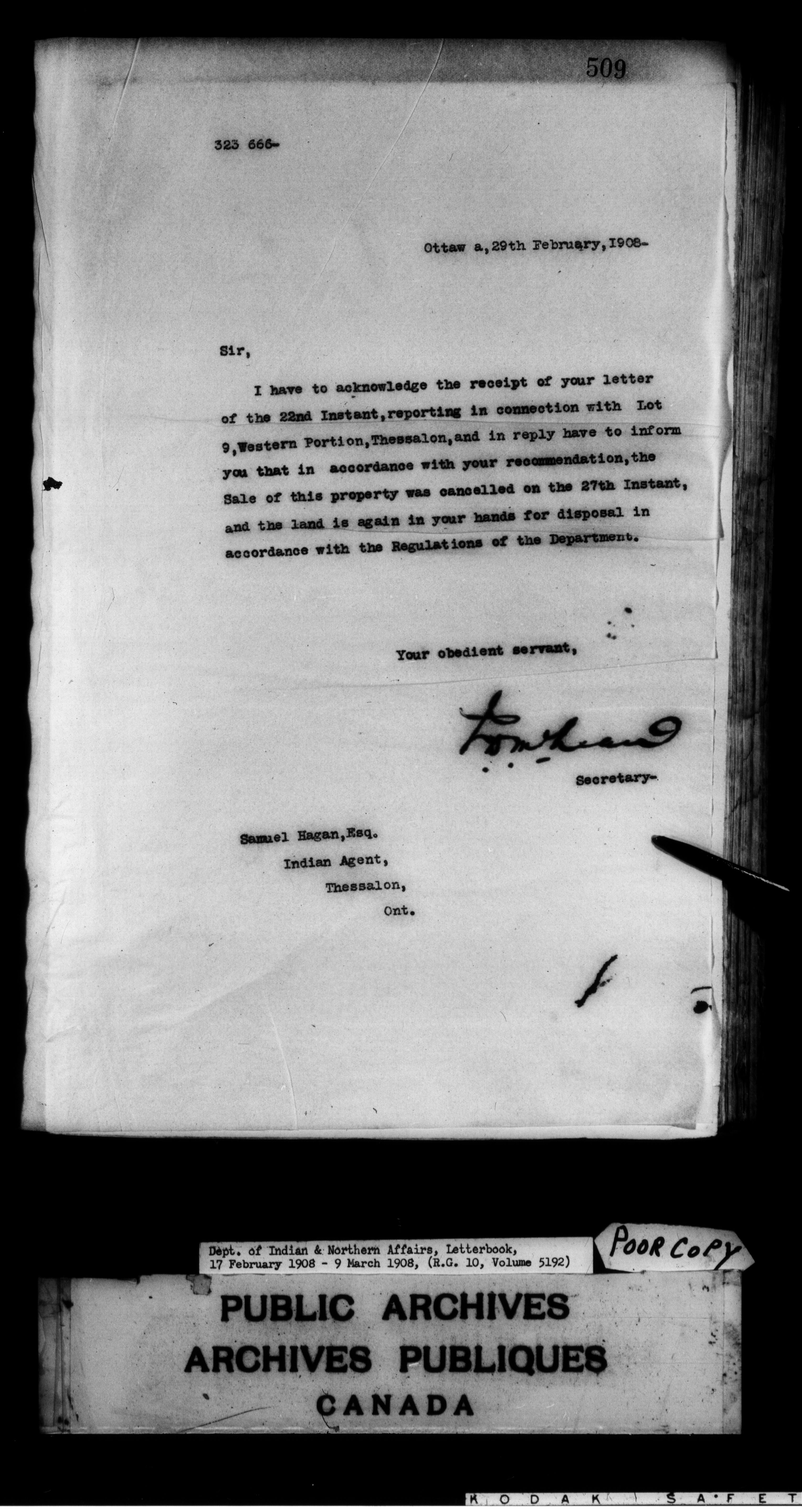 Department of Indian Affairs : Letterbooks of out-going correspondence relating to the administration of Indian Affairs in both eastern and western Canada, 1871-1920 - 7481