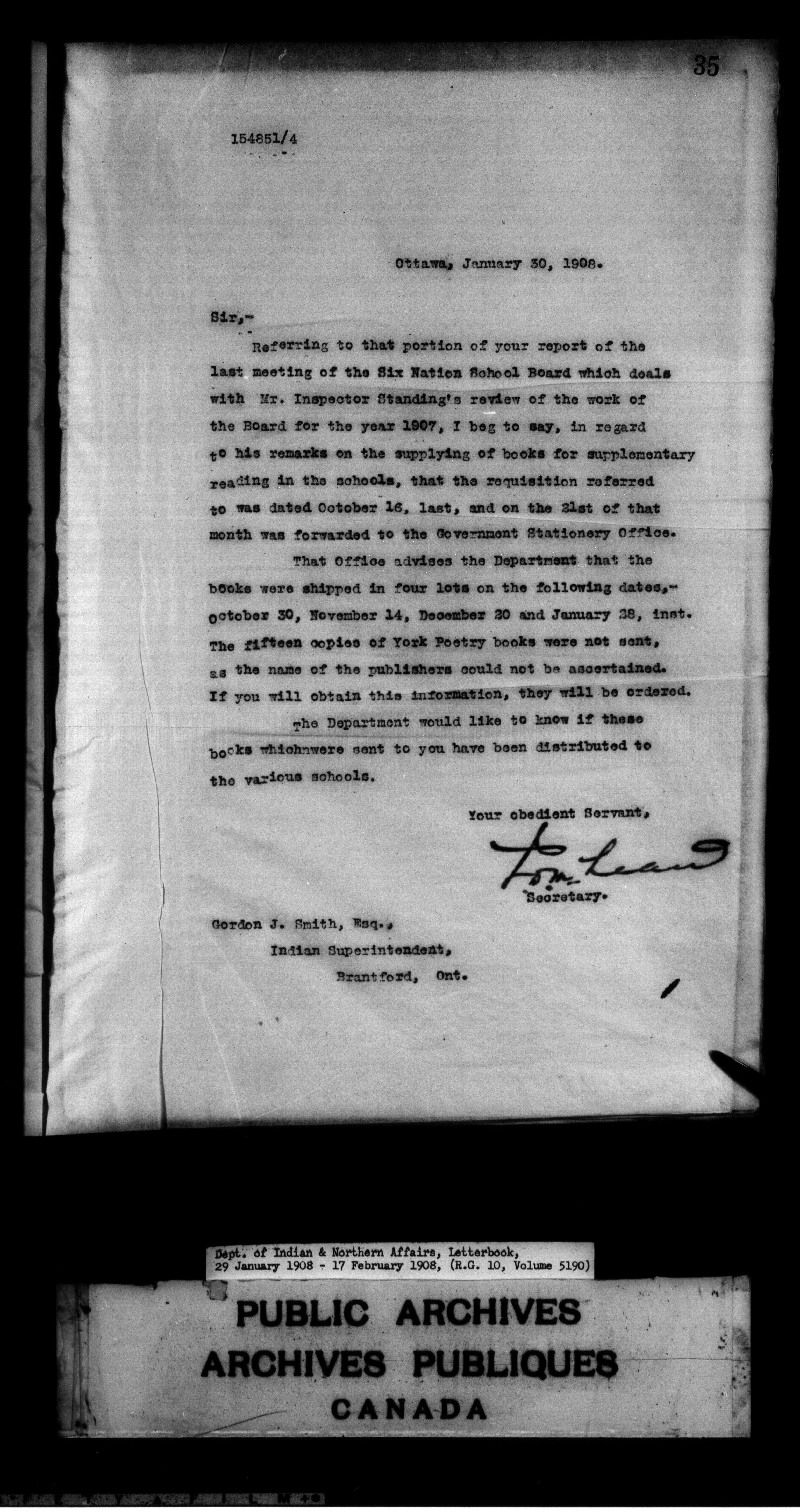 Department of Indian Affairs : Letterbooks of out-going correspondence relating to the administration of Indian Affairs in both eastern and western Canada, 1871-1920 - 7481