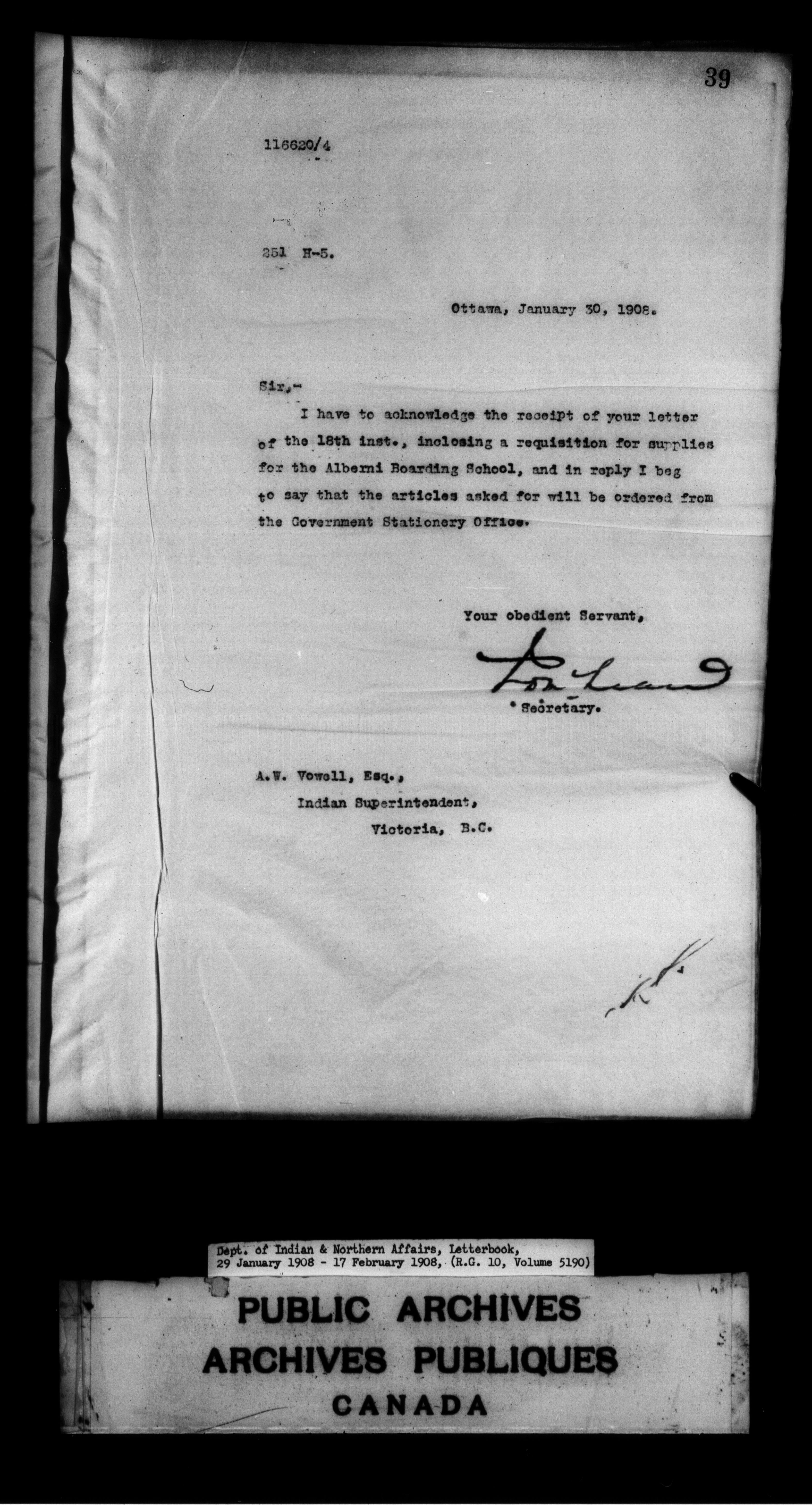 Department of Indian Affairs : Letterbooks of out-going correspondence relating to the administration of Indian Affairs in both eastern and western Canada, 1871-1920 - 7481