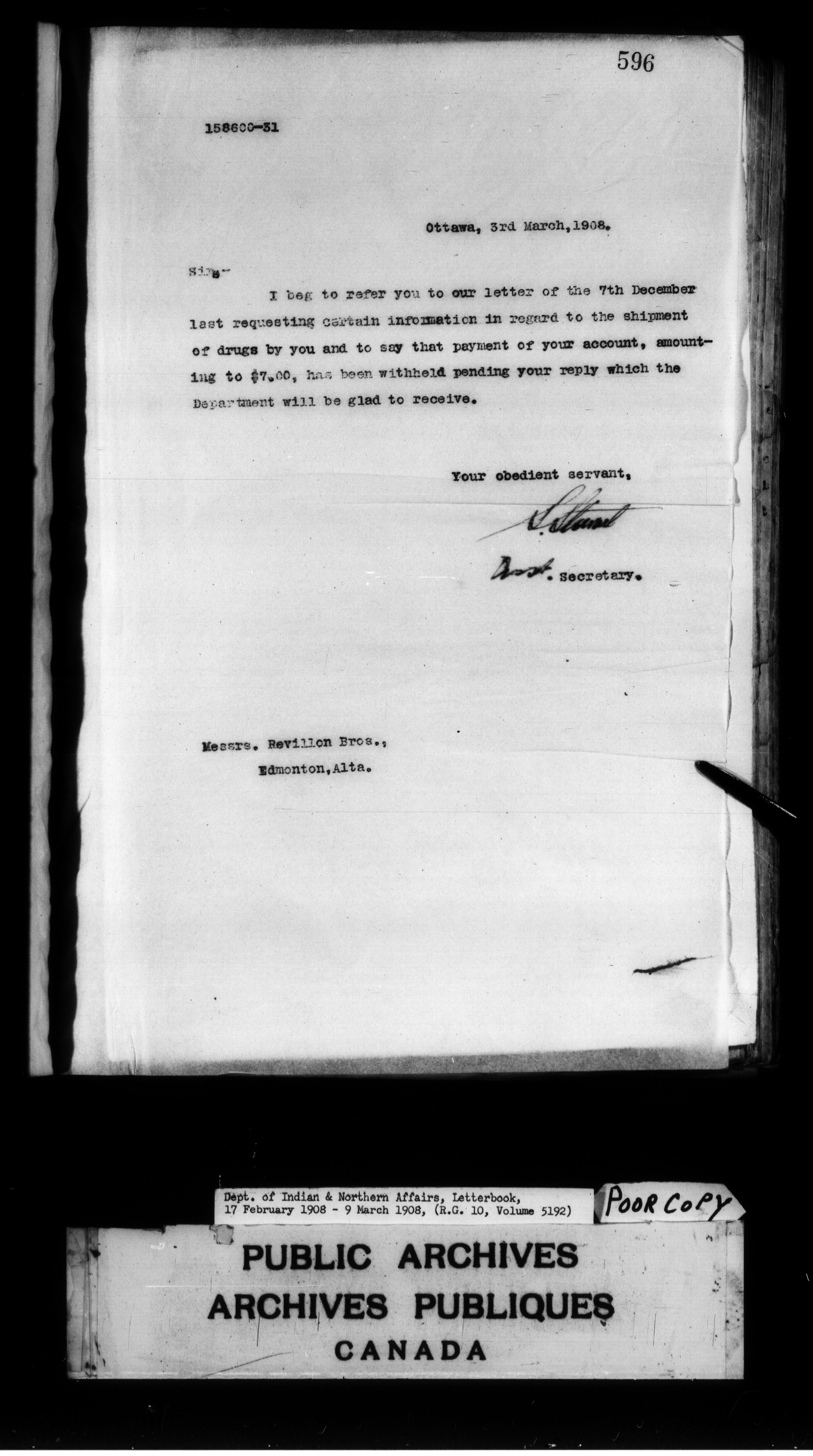 Department of Indian Affairs : Letterbooks of out-going correspondence relating to the administration of Indian Affairs in both eastern and western Canada, 1871-1920 - 7482