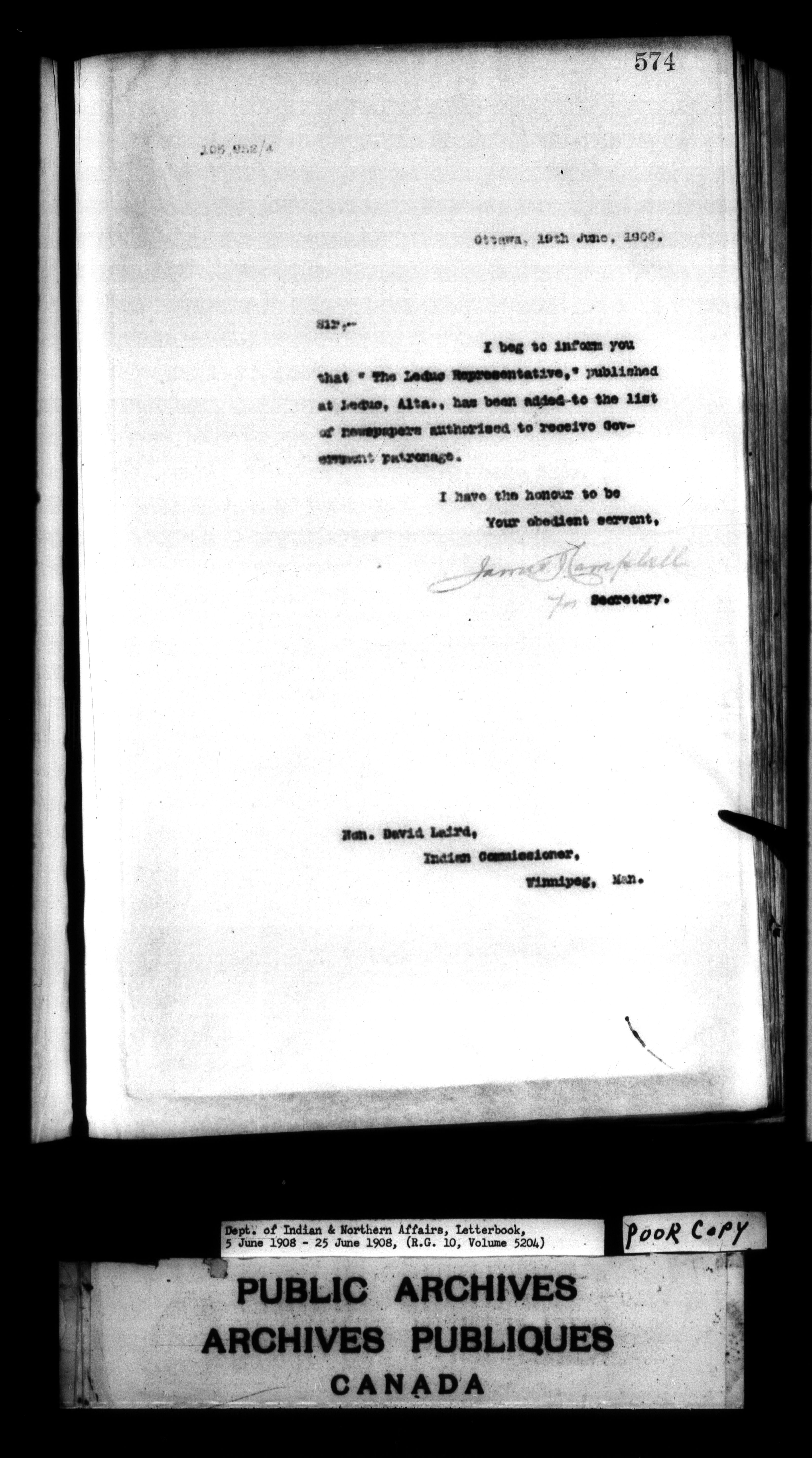 Department of Indian Affairs : Letterbooks of out-going correspondence relating to the administration of Indian Affairs in both eastern and western Canada, 1871-1920 - 7485