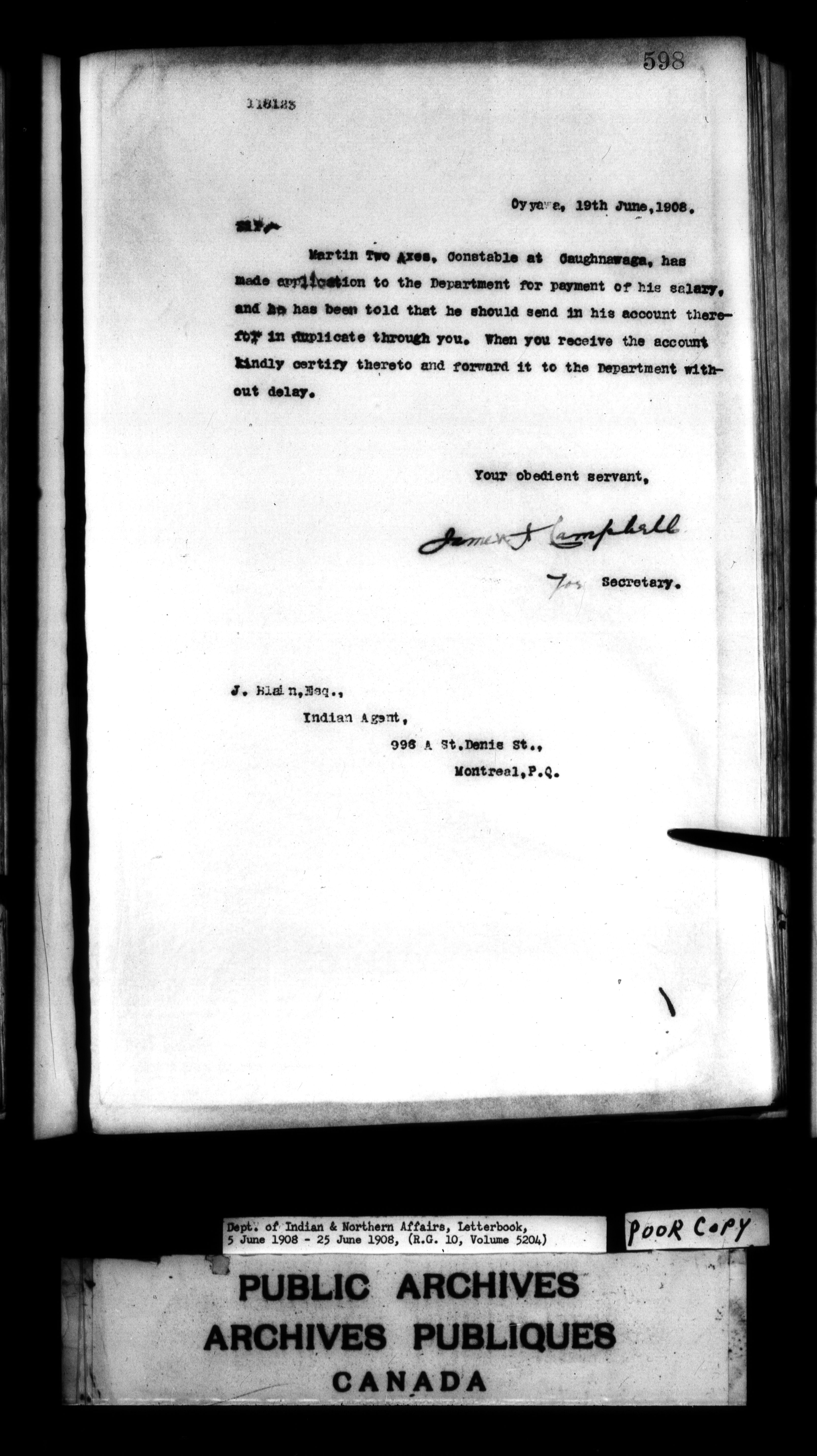 Department of Indian Affairs : Letterbooks of out-going correspondence relating to the administration of Indian Affairs in both eastern and western Canada, 1871-1920 - 7485