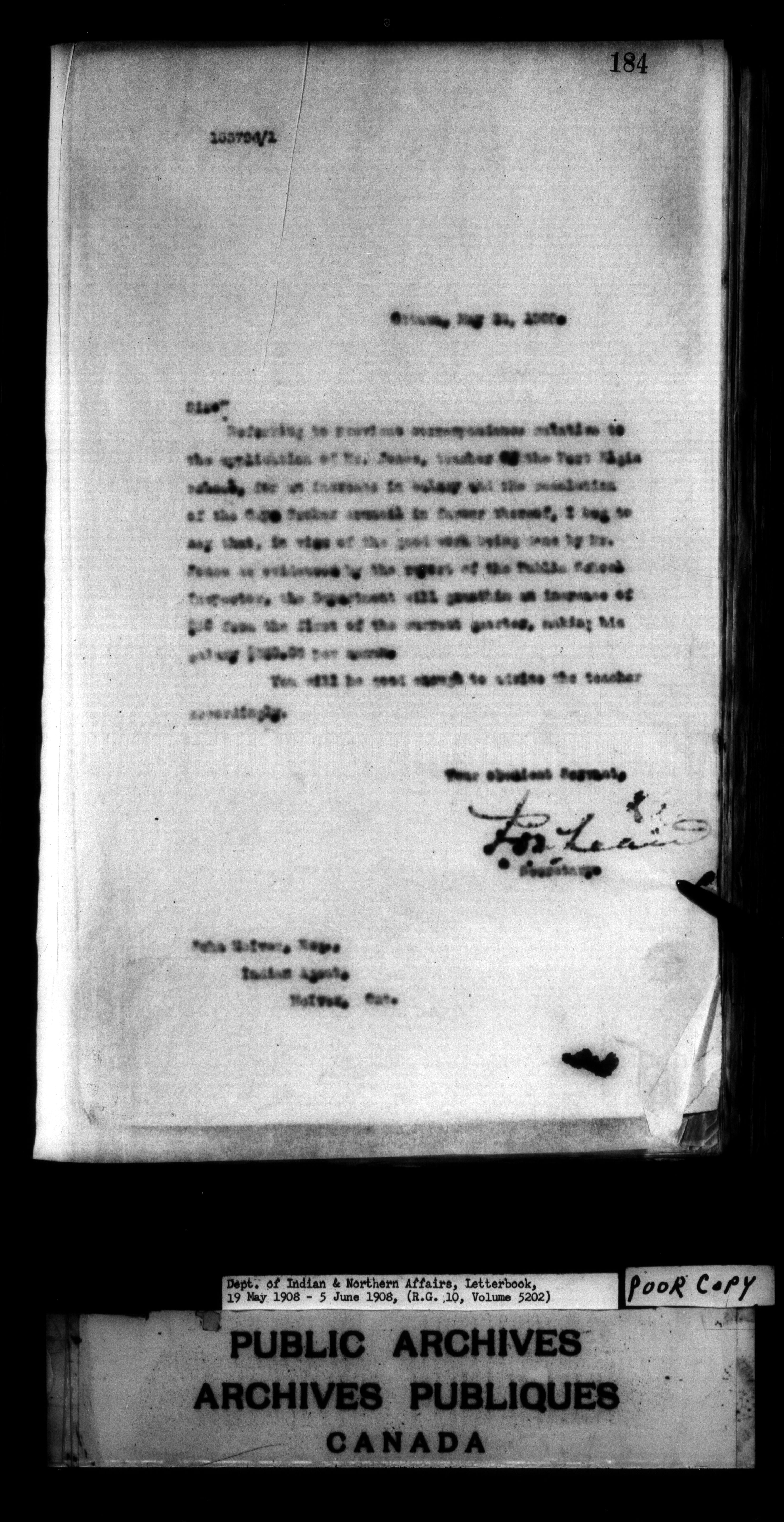 Department of Indian Affairs : Letterbooks of out-going correspondence relating to the administration of Indian Affairs in both eastern and western Canada, 1871-1920 - 7485