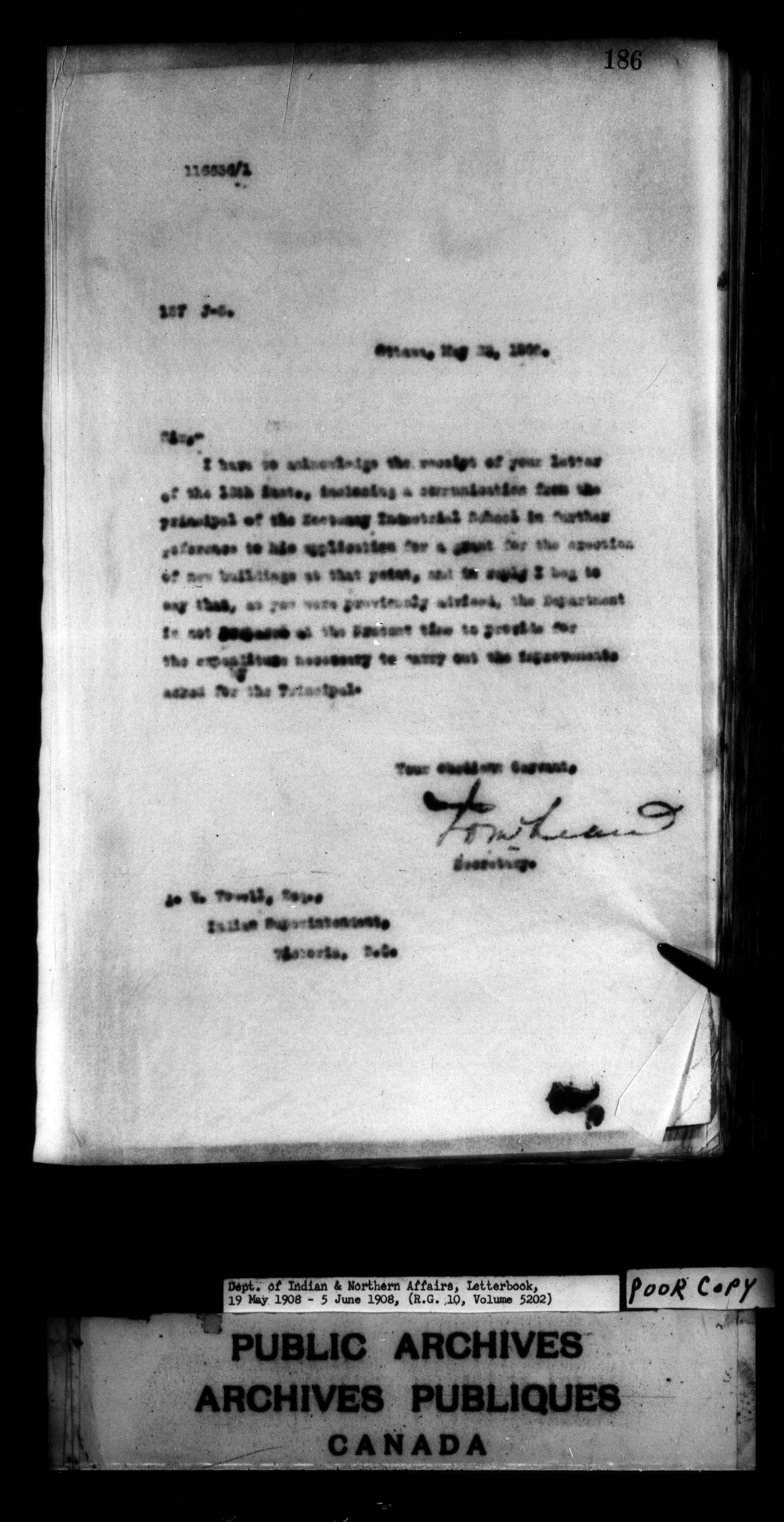 Department of Indian Affairs : Letterbooks of out-going correspondence relating to the administration of Indian Affairs in both eastern and western Canada, 1871-1920 - 7485