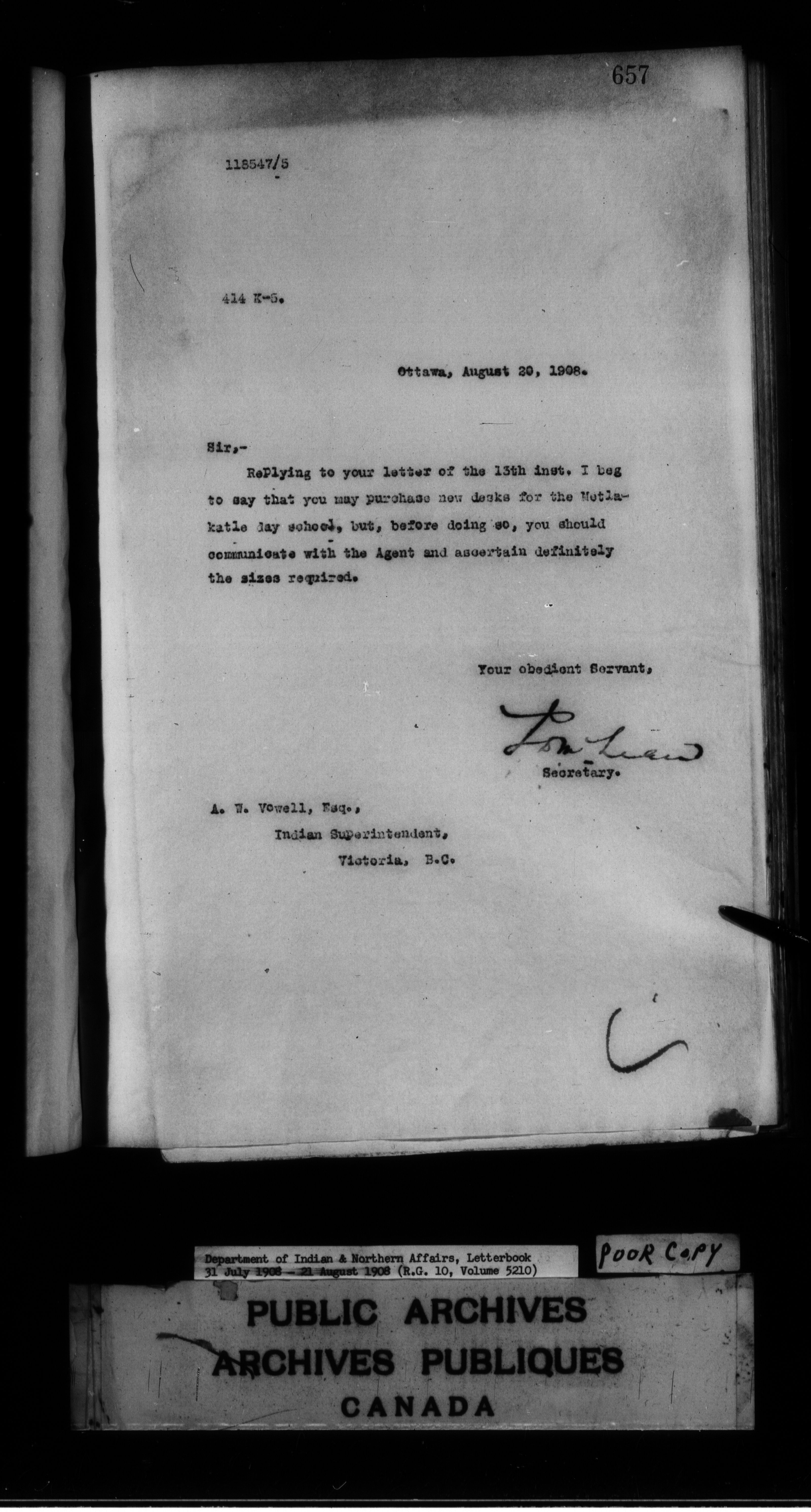 Department of Indian Affairs : Departmental letterbooks : C-7487
