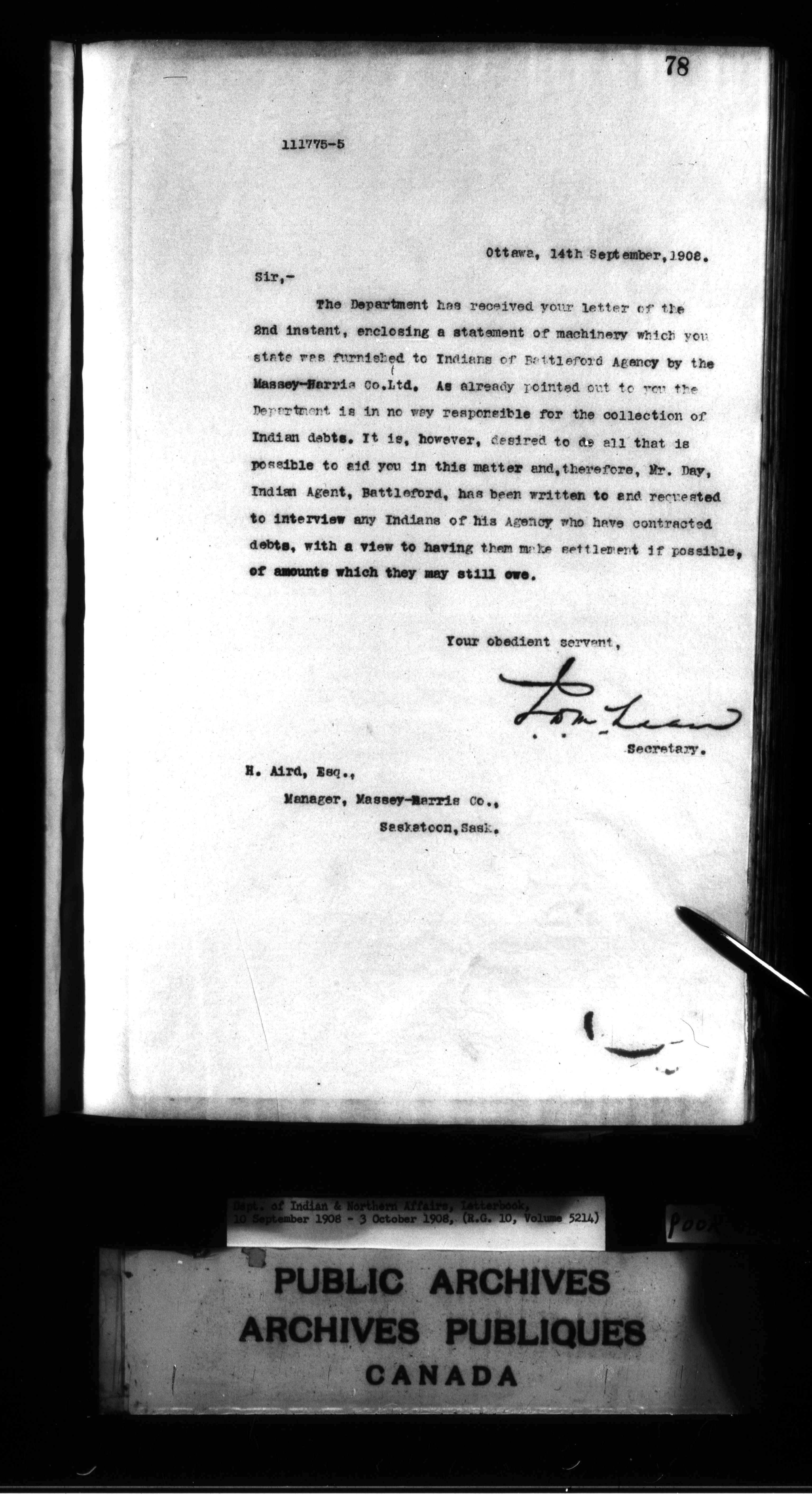 Department of Indian Affairs : Departmental letterbooks : C-7488